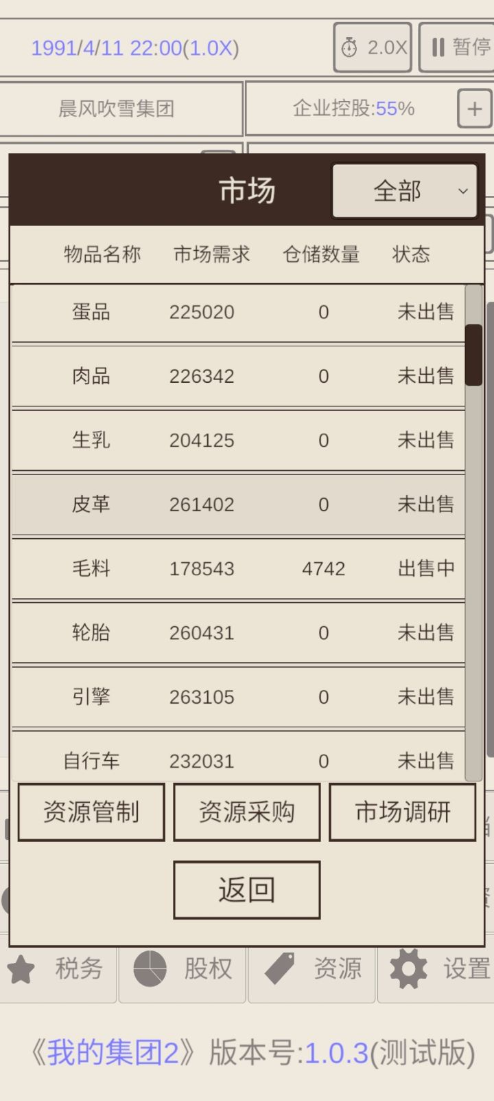 完了一天多,感受是没用第一部好玩。一,百分之百股权开局不需要资金支援无法游戏望改进二,建造的生产线太慢需要三十天且资金需求非常大,如一条十五的生产线需要快三千万的资金且还需要等三十天。三,市场需求不随着游戏增加而增加,到中后期资金增长非常缓慢。四,资源矿产刷新非常缓慢,采集速度非常缓慢,石油不刷新。五,造车需求钢铁太高,若要完成年需求量,需要钢生产线四千五百每小时,铁资源供应需要四千五百
