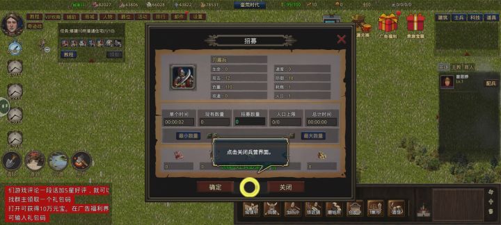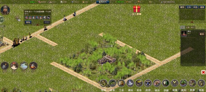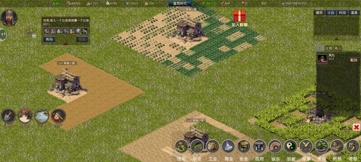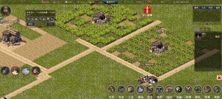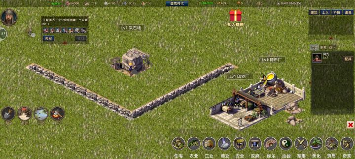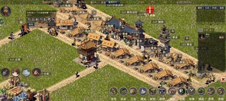 #我在古代有座城 续上,9月6日 今日晴,目前玩了六个小时研究明白一半,还在蛮荒时代因为一直在研究怎么玩。首先开局进去游戏会给你一个大礼包,做为刚开局的我们用不上…好了开始正片: 开局一片土地,建设为人民都靠我们自己。 (1)首先不要先点住宅!!!先点开我们的安全,把那五个建筑水井等建筑密集的先种一排,其次在打开我们的住宅包围着我们安全建筑去放下,这样的效果可以快速提升人口。 (2)商业