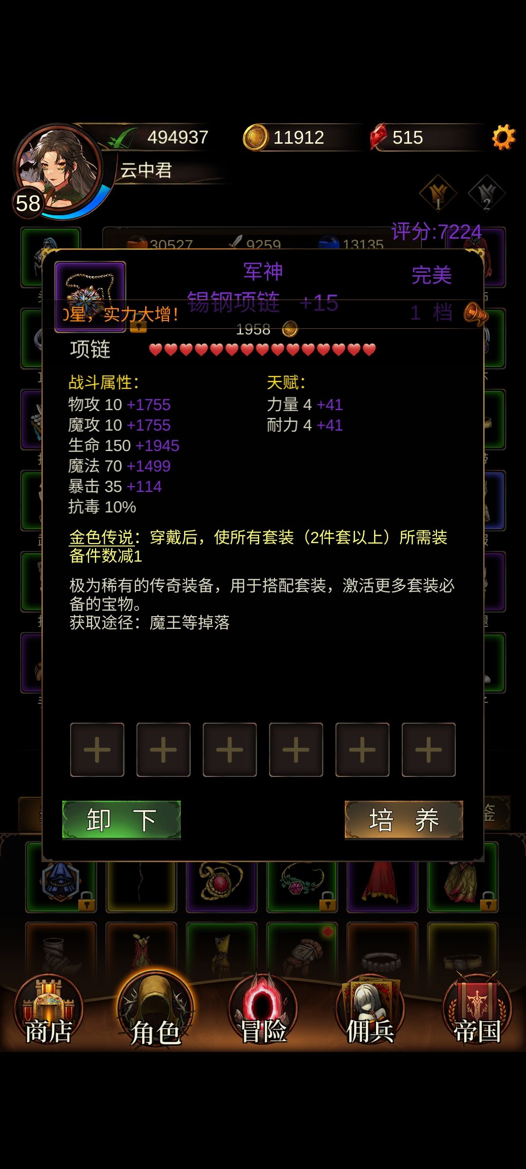 开局先做主线,然后打伊瑟拉能出军神的话最好,不行的话存一个礼拜商店兑换。 前期是风之力披风和风之力鞋子(这边是10减伤),阔步腰带(11减),末日护臂和末日护腿加上你的末日戒指(18),海蛇(8),失落手套,失落武器,失落佩(27),物免头(8),加上佣兵团7或14。 这边加起来是89,刺客的话5戒指就不用打了,你是射手的话就只有84(带上5戒指就行),然后还多一个配饰位置随便搭配(有的运气好