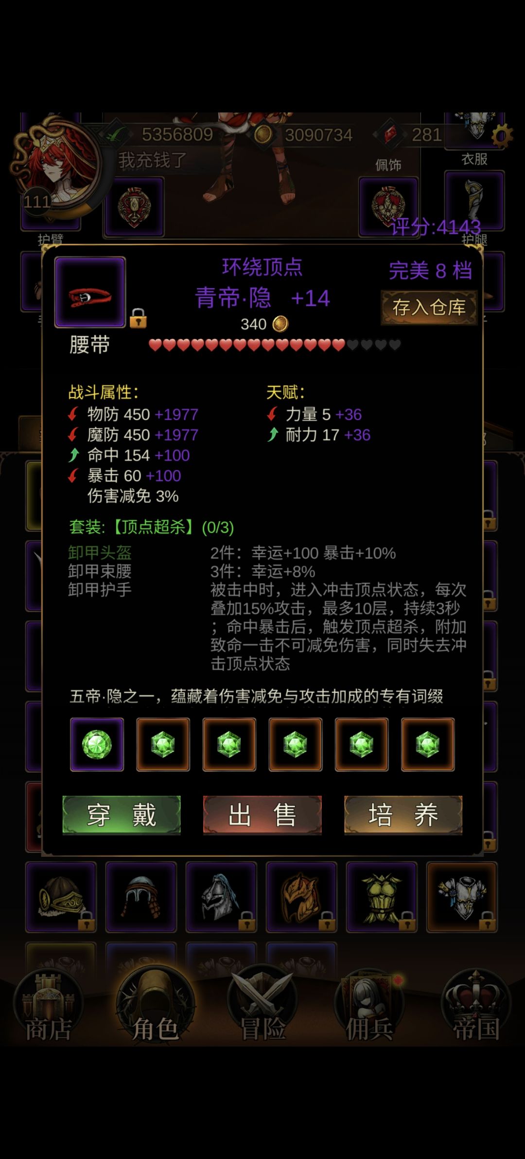 首先是创建角色,前期选什么职业区别不大,而且可以50钻随意转职,选自己喜欢的就好 ,我这里选择了巫师,45级魔法盾能够+28%减伤,缓解非洲人前期配装压力。后期高难本基本都需要转刺客。 接着跟着主线任务一路轻松做下去,任务赠送的米娅勇者、玛琪魔女、 薇薇安神官基本可以用到毕业,可以放心升级。 任务会陆续赠送一套真帝装备,前期用不上,可以随便搞着玩一玩,记得上锁,丢包里吃灰。 前期建议优先强化武器、