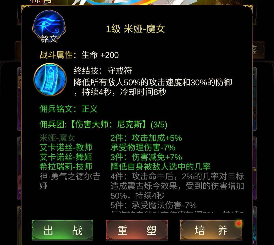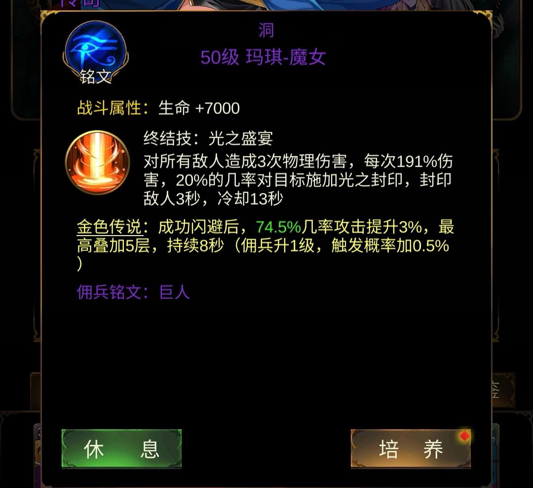 我目前新区190万战力,之前用的是第二个佣兵米娅魔女,可以降低对面攻速,打人魔13大概5把能过一把!然后我去看了攻略,里面推荐的是第一个玛琪魔女,我目前就用的玛琪,但是打人魔13要20把才能赢一把,有点后悔了!铭纹去除要15纹,太贵了!唉,现在都不知道咋办了!之前用米娅的时候小概率5秒钟就秒了13人魔boss,就是靠这个5把能过一把!换了玛琪就没出现过秒boss的情况了!感觉还是要换回来米娅才行!