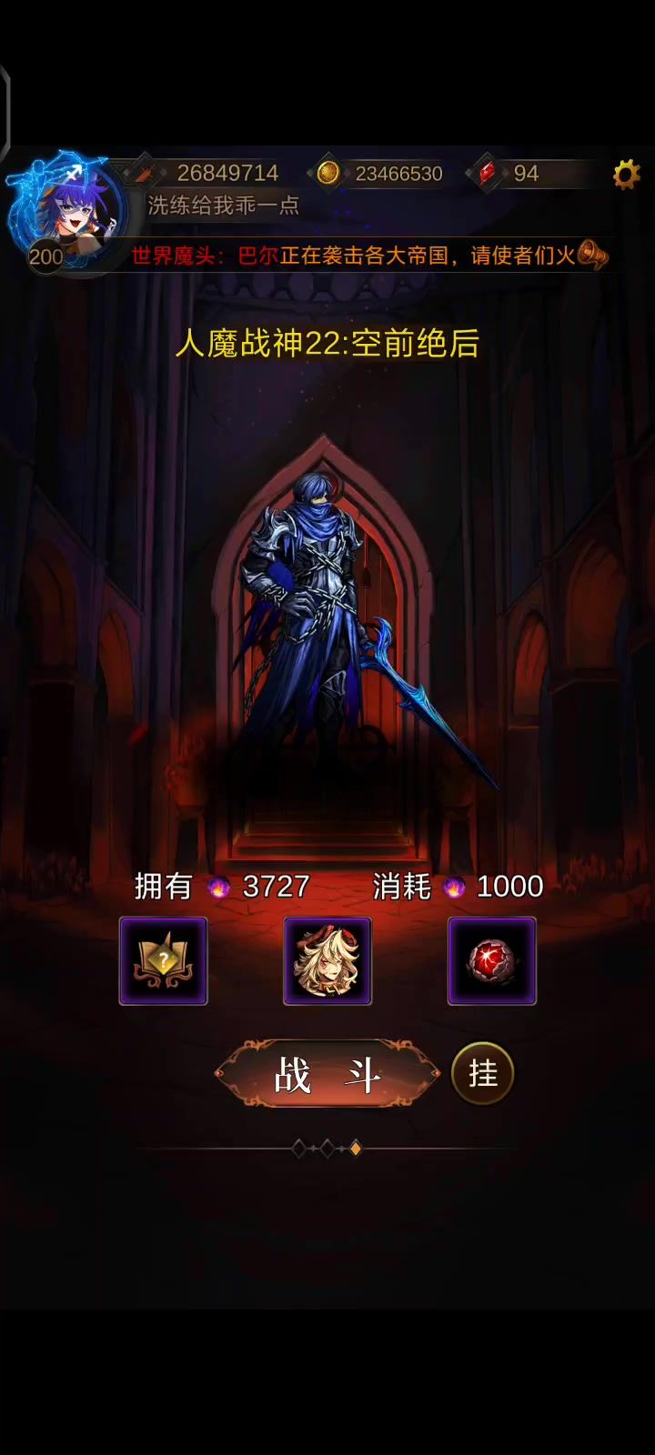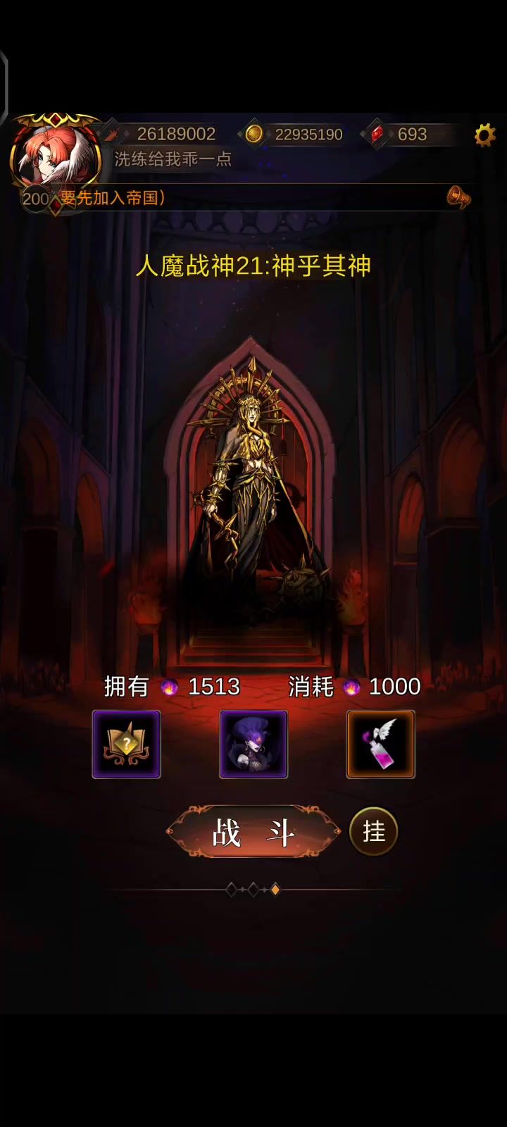 400大魔瓶想刷2000魔王拿个伯爵佩那几率估计是从0.01提到0.015,不打2500因为我得手动,全自动会挂,这自动有技能不会放的