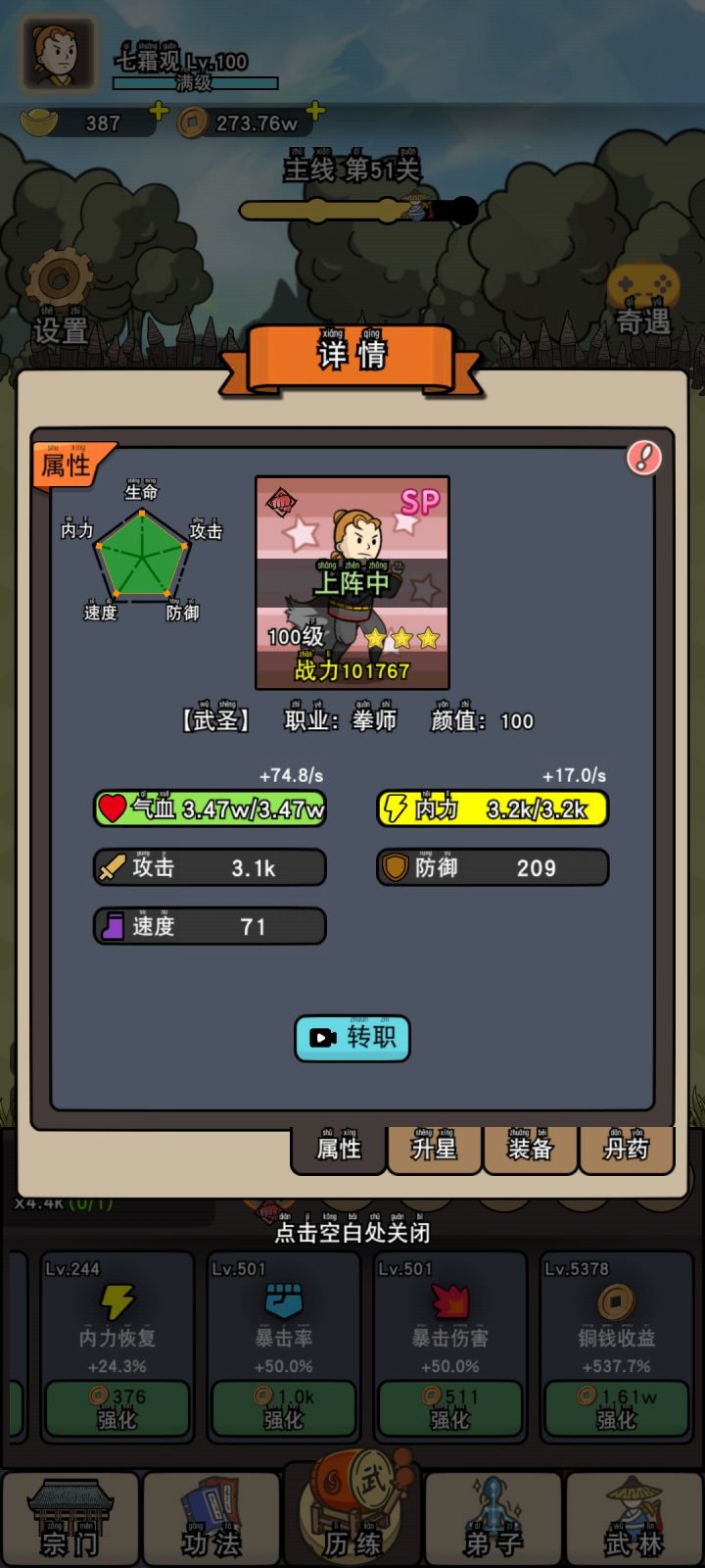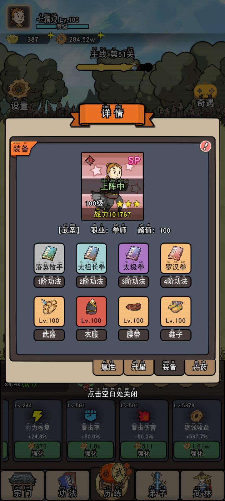 比较无聊的挂机游戏,属性丹只能一个一个点着吃废手,防具签到会给红色的衣服其他的不知道怎么弄红色可能要看广告吧