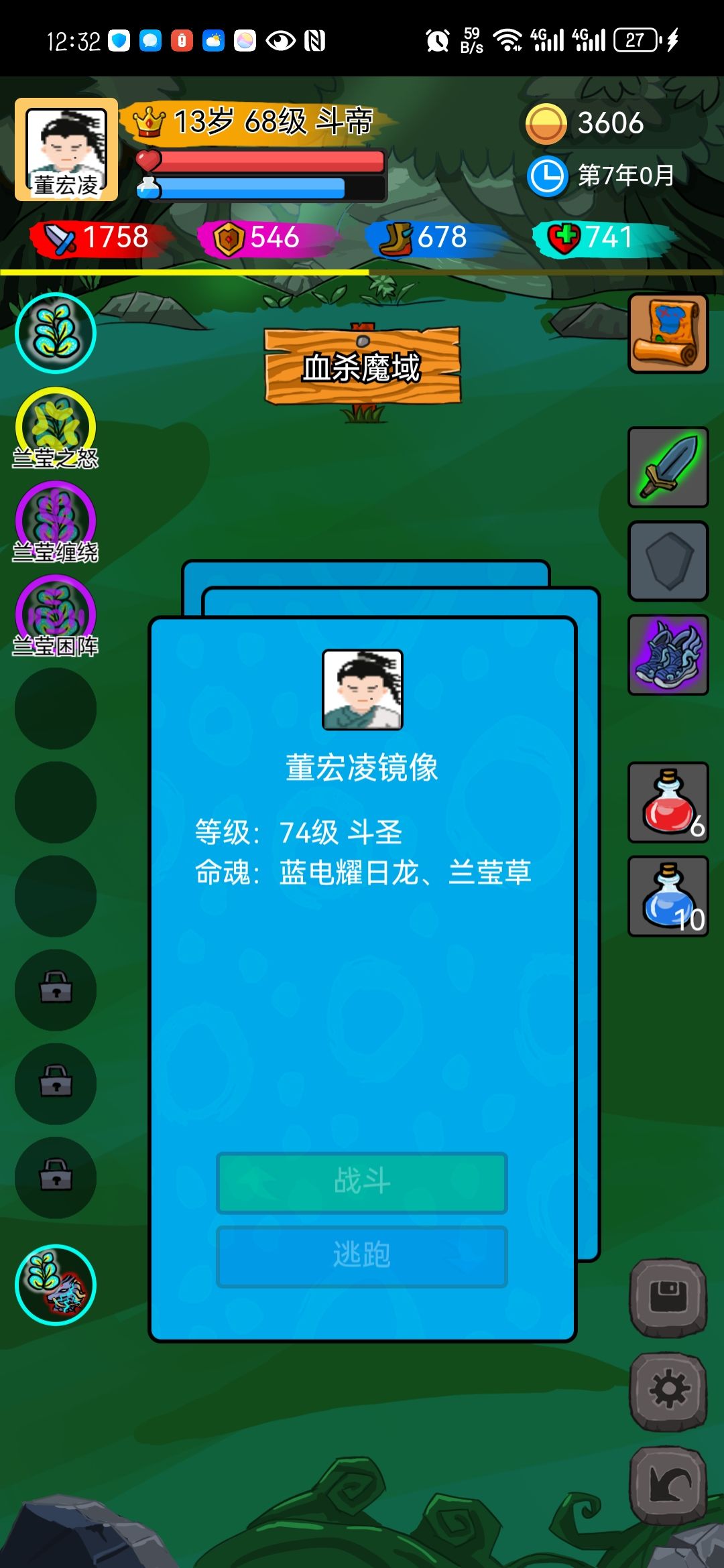 这里是傻瓜式刷级速通思路 众所周知血刃酒馆里血杀魔域是自己的镜像,打他是最安全,最套路,经验最稳定的(可从低级一直刷到满级) 有的人会问打不过镜像怎么办? 简单! 傻瓜公式:随便攻击武魂+随便控制武魂(核心)例如兰玲草 只带4个技能,其他一律不带 控制武魂:缠绕(尽量紫色)+困阵+怒气(秒人) 攻击武魂:暴击 一定要手操!不要嫌麻烦,其实很简单!无脑点就行。先缠绕(对面三回合动不了)再困阵(buf