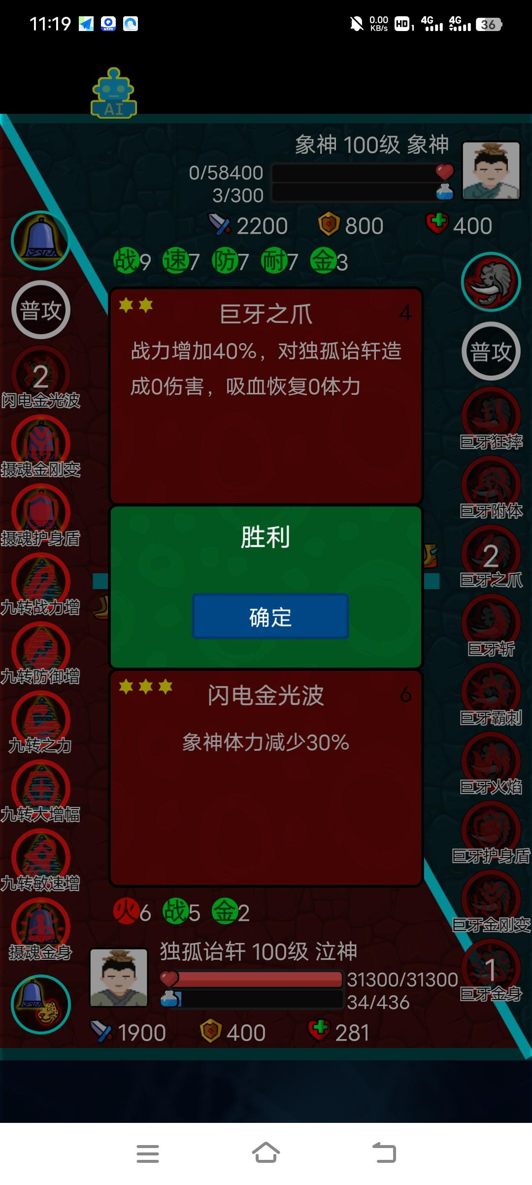 #斗神大陆 看了别人50级打十万年,自己也挑战了下,真挺极限的。火焰、金光波的攻击不会使自退出隐身状态,两个瞬移(减技能CD)+两个隐身,在对方速度不明显高自己太多的情况下,可以一直续隐身,然后用火焰和金光波百分比减对方血。隐身的判定条件为受到对方攻击才减1(金身也是),而不是自身行动一次减1。所以对方速度是自己两倍的情况下,先放一次隐(紫隐持续回合为3),然后对方攻击两次,隐身回合为1,若是放火