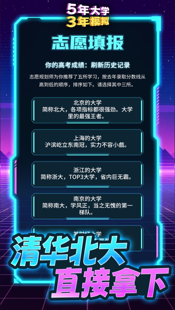 , 从填志愿开始,模拟入学学习打工到期末考的各种事件。