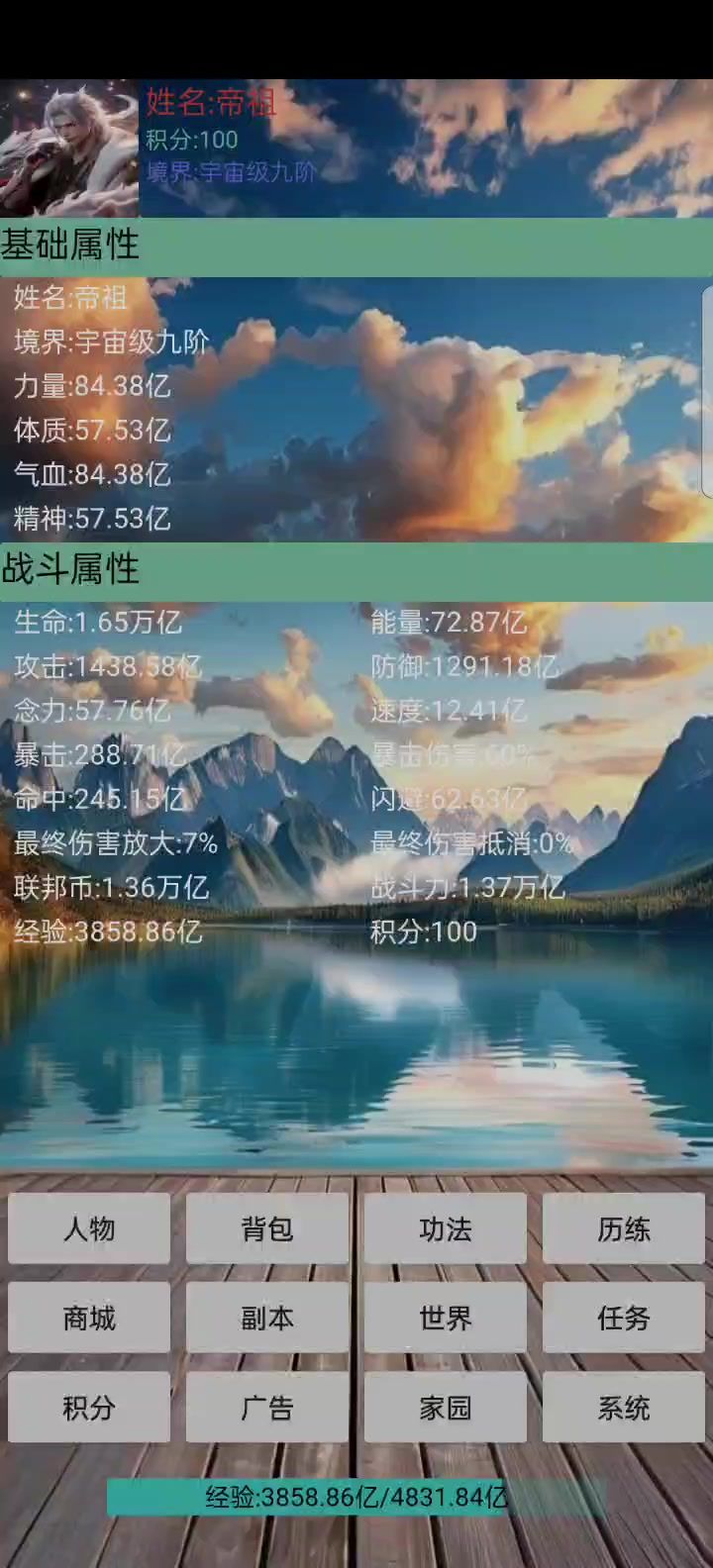 先看广告买倍率,经验和金钱,然后看任务,跟着做给初始资金,前期跟着任务刷经验副本,会给启动资金的,到中期任务的启动资金不够了,我们就自己刷经验副本,一件装备等于一张门票,出四件就是赚三次经验副本门票,然后就这样循环刷,一天就到宇宙九阶了。