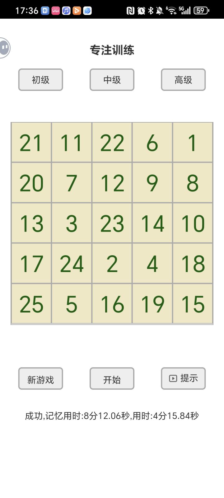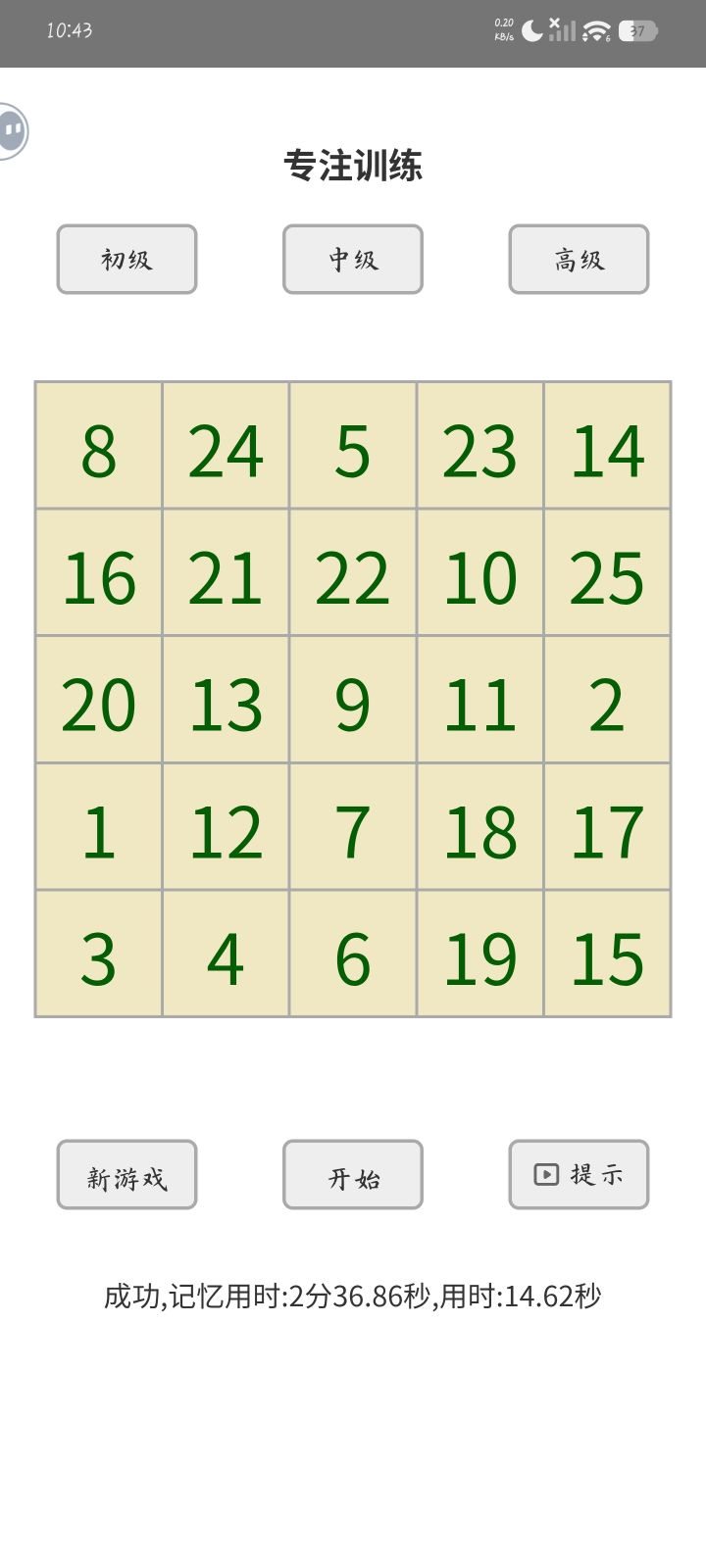 刚下载一分钟,感觉还行,大家可以试试在新游戏之前先冷静下来,然后点新游戏之后快速看一眼所有数字不用记顺序,然后用两秒钟闭眼回忆,点击开始就可以了
