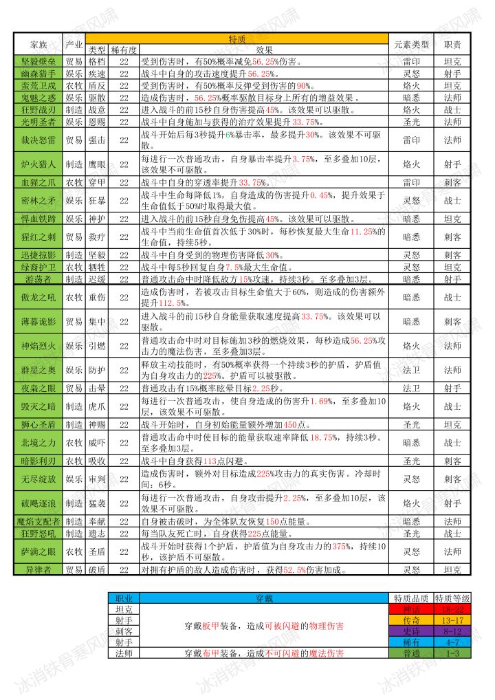 玩了几天,部分英雄特质整理了一下,
