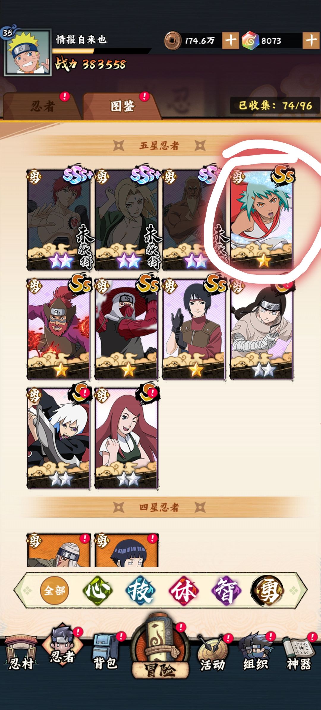 第一sss人物确实溢出。谁心愿sss谁傻。 首先sss来源 百日 抽卡 转换 碎片 自选 百日,基本佐助 团藏 我爱罗 每天出其中一个,偶尔例外 抽卡 14天大概在1700抽左右 你不会一只不出吧 转换 每次九尾活动用120抽 每10抽转换一次 你猜能出多少只 碎片 这玩意挺多的出sss概率也高 不过我好像就出几个能用的 然后自选 一般优先选佐助 次选团藏 另外除了佐助需要在sss+本体不足