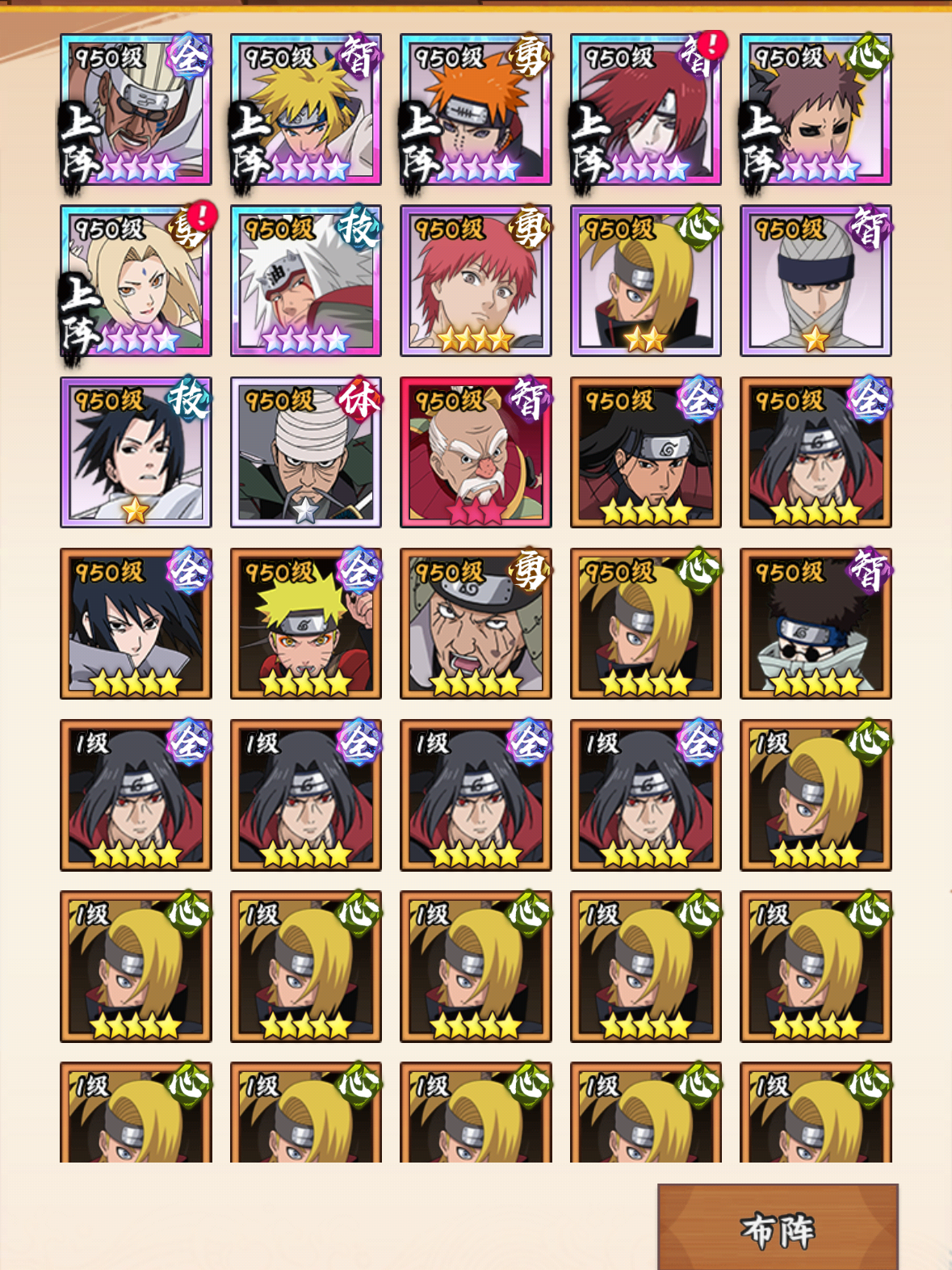 刚接手的号 想问一下我这个是什么阵容? 后续的话该用哪些忍者组队现在的鼬需要置换鸣人或者佐助吗现在探索1066 无限2025 就打不动了 怎么提升 #火影忍者木叶高手
