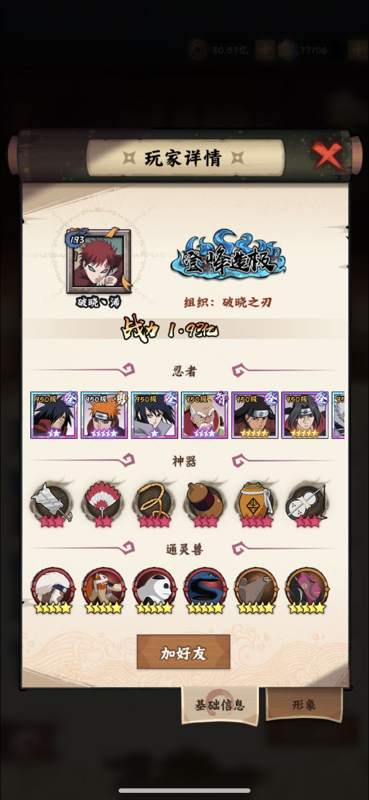 本周一二合当天,战力已经破亿,但最近一直在忙组织合并的事,实在没时间更新其实晚几天更新也好,少了很多牢骚话,不然又要抱怨合区多么不公平了。第一个sp专30给了仙人自来也,后面把柱间专属补到20,等百豪纲手出来了就拉第三个sp,然后补⭐等ur了。我的阵容到后面一周年庆典前基本不会变了,战力破亿以后也不会像之前那样1000w一更了,所以今天就多说一点吧。从开服建号加入【妙木山】,