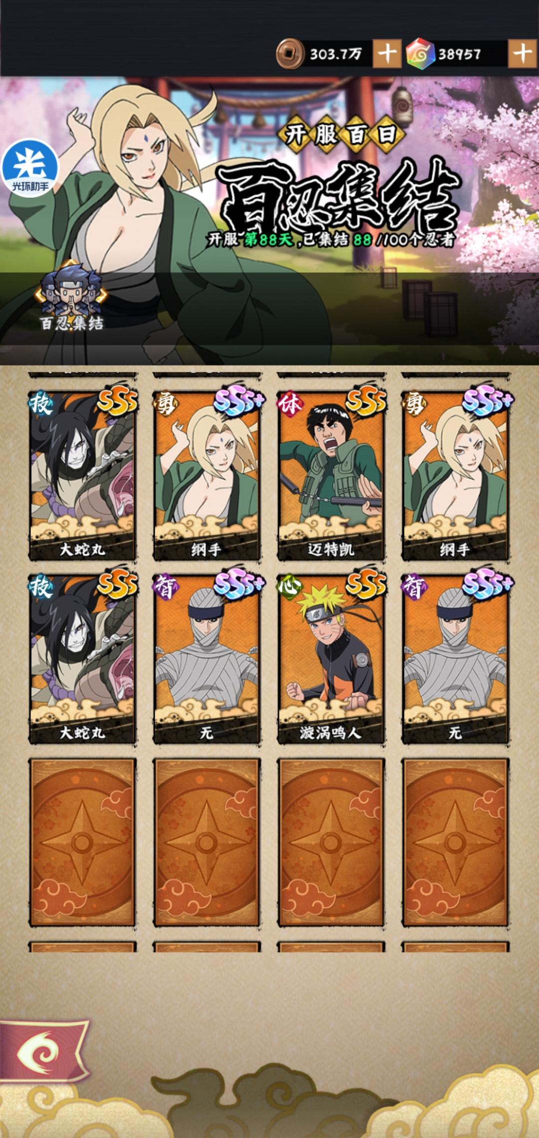 打卡留念。耗费一晚上终于突破一千层大关,感谢贴有提供的思路。我爱罗最需要狂暴反击,反伤一直没有刷到,不然可以更早通关。后面可以躺平了。。。平民,零氪可以参考