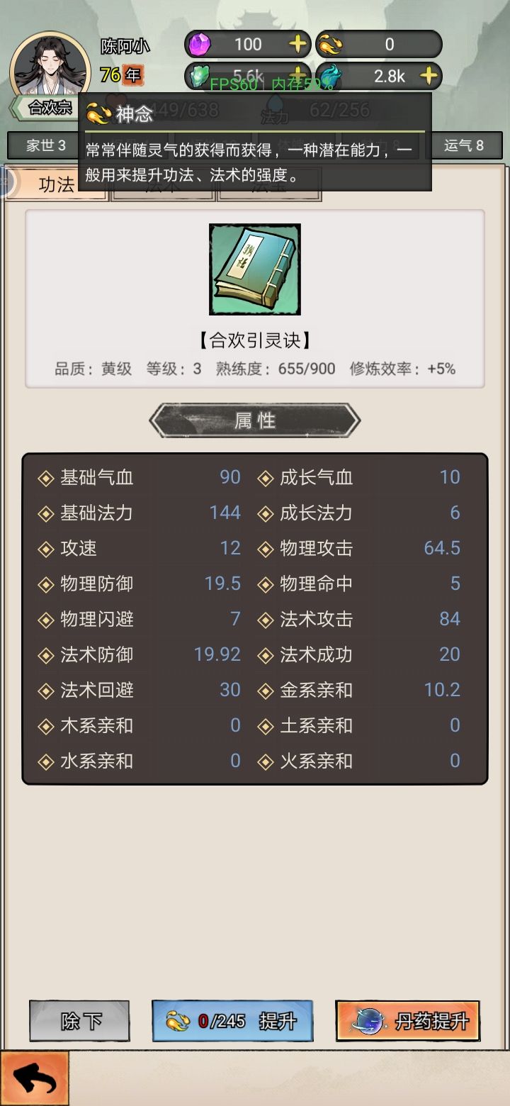 玩法现在有点少,弟子这一块是个bug,招了六个弟子只能培养一个还不能装备功法和法宝,其他五个看不见,可以借鉴一下《修仙家族模拟器》里面的培养弟子与攻阀领地战这样不会无聊。这个游历太少,一跳几十年…