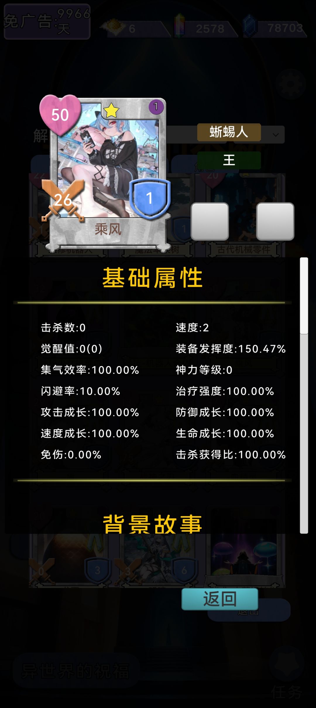乘风卡制卡教程 基础原理:特性乘风速度翻倍,可多卡叠加,有双生恩典神赐即可打过神王,高速攻击为速度转伤害必备特性,吸血提高容错和存活能力,因卡属性不高,底力为必备保命特性。 1.等级要求:1级或2级卡(1级卡基础花费50,2级卡基础花费120,3级卡基础花费350,要买的卡过多,故不推荐3级卡) 2.种族要求:血族,蜥蜴人和元素(血族在制卡选取技能吸血,蜥蜴人和元素在制卡可选取乘风) 3.卡属性要