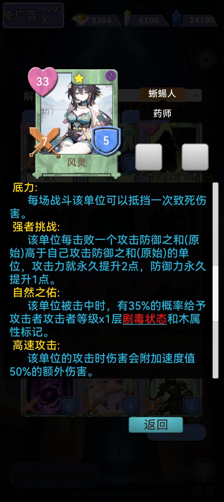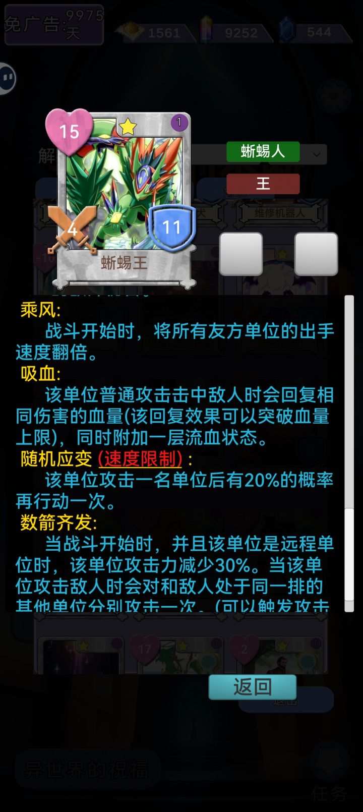 乘风卡制卡教程基础原理:特性乘风速度翻倍,可多卡叠加,有双生恩典神赐即可打过神王,高速攻击为速度转伤害必备特性,吸血提高容错和存活能力,因卡属性不高,底力为必备保命特性。1.等级要求:1级或2级卡(1级卡基础花费50,2级卡基础花费120,3级卡基础花费350,要买的卡过多,故不推荐3级卡)2.种族要求:血族,蜥蜴人和元素(血族在制卡选取技能吸血,蜥蜴人和元素在制卡可选取乘风)3.卡属性要