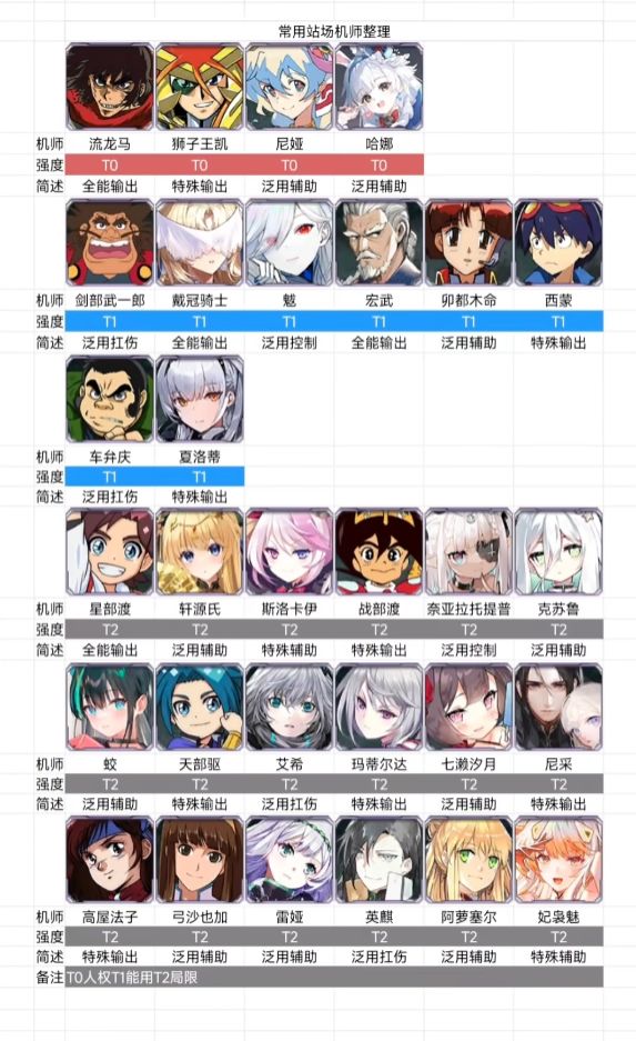 机体篇 t0梯队 绝对统御 新出的老机体超改控制拉满全队罚站,我不会告诉你任何东西,啊啊啊啊啊啊。 有些人打着打着自己被反弹死了,配上阴间人和音叉更佳。 如何评价,射爆简单粗暴,新时代的超模数值怪,即使淘汰辅助位也能用。 从c位机体到辅助位扛把子 t1 虽不及t0但是仍有与之一战能力 无敌帧多底盘克制魔神 你去把魔神zero干掉,啊?我?前pve新神。 全屏aoe脆皮杀手辅助杀手 之前几乎可以白