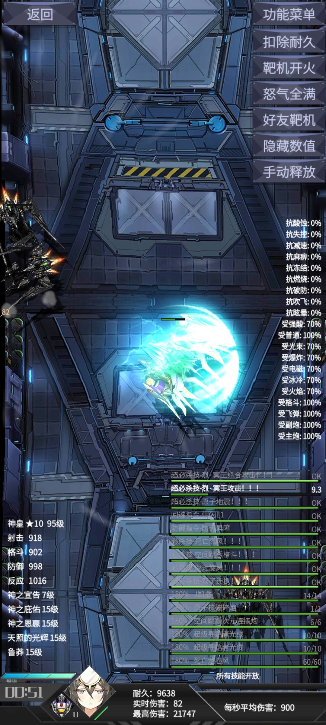 常规火队有点压不住显圣,输出很不稳定,又把月华拉出来就业了(上一次用还是高周目的次元boss,一堆刷CD词条) 弓沙+守梦在场减CD,老头月华无缝衔接的月光,稳定高刷强倒。机师大招随便开,显圣只有被动挨打的份。全程只需要拉一下守梦的走位,有多远滚多远,别跳上去吃弓沙的被动就能赶在时间到之前打完,被动吃多了就得靠巴哈姆特兜底了[表情_歪嘴笑]。 炮灰这里只开了宏小羽就全送下去了,梦乃栞没来得及用技能
