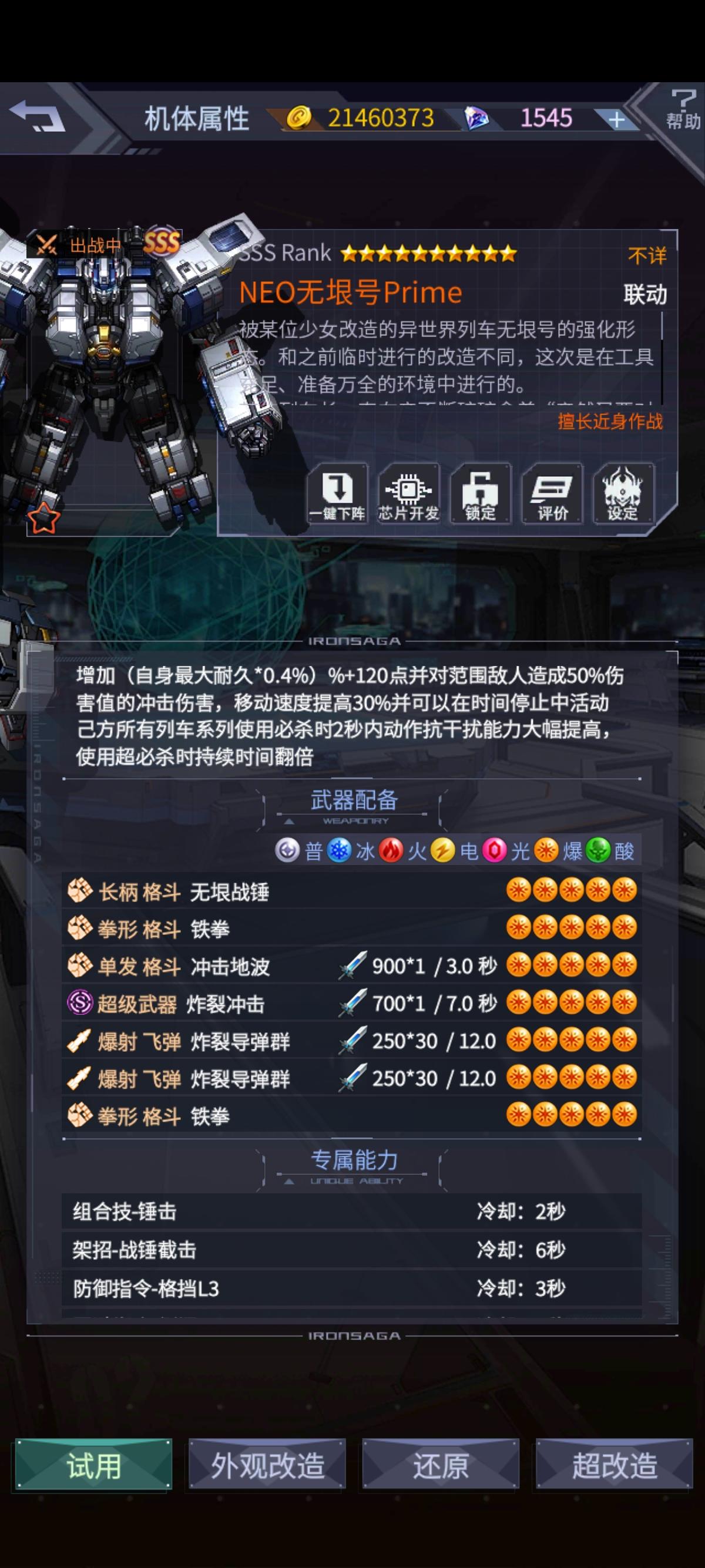 上古老登回归,后没有佬帮忙配个佣兵队,发现以前的佣兵啥都打不动了,机师以前的都有,配件默认全有,觉醒机师基本都能在拉几个满的。后面有没有啥建议抽的机体,现在的队伍打个后面的觉醒之路都困难,还是改了个亚特才一路打过去后面弄了个队伍,有没有佬看下要咋提升