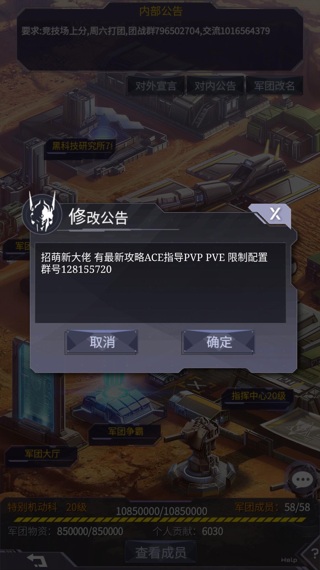 群内还有限制配方,竞技场阵容等各种攻略,非本团玩家也可以聊天交流经验(记得备注)同时军团招人,不论什么练度都会安排好军团