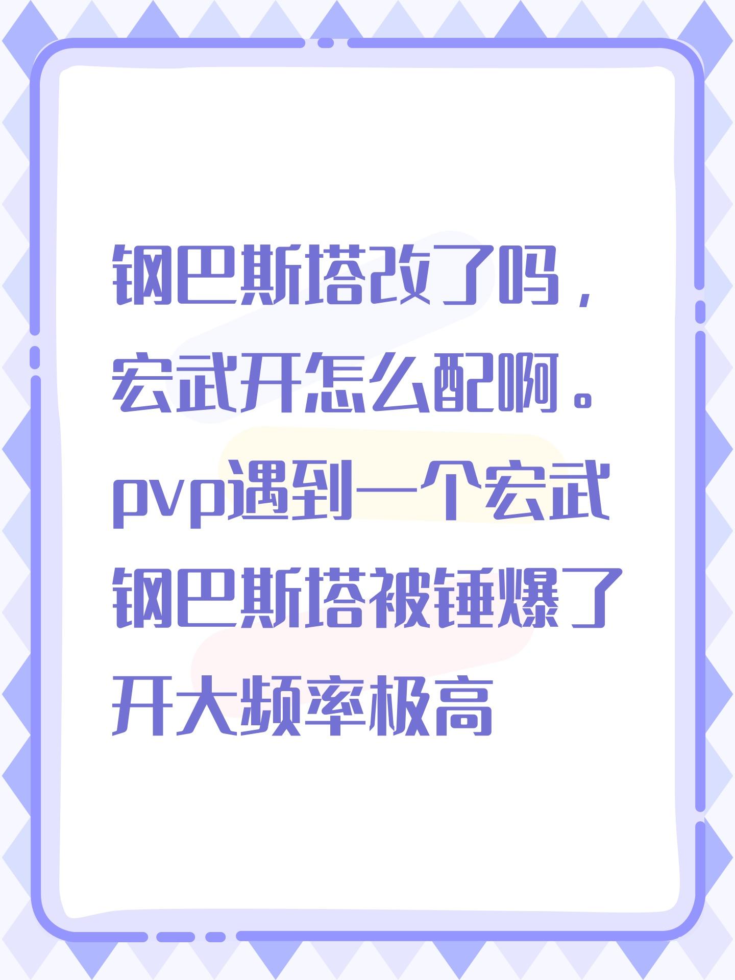 钢巴斯塔改了吗,宏武开怎么配啊。pvp遇到一个宏武钢巴斯塔被锤爆了开大频率极高