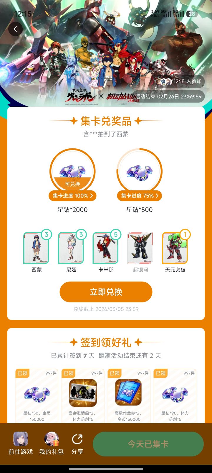 麻了,送的票一台没出,池子还剩1抽必出S,就抽了一发,结果出了一台,咬咬牙用两张船票赌了一下,满了