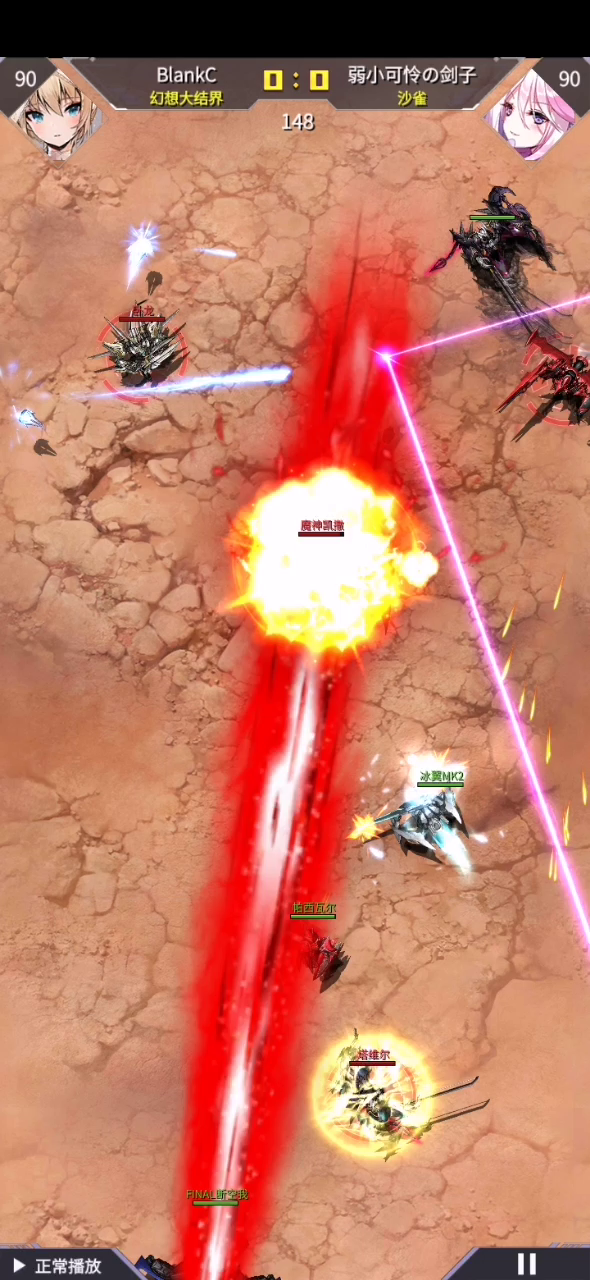 两台都弱飞机,拿飞机没办法,不过1+1>2两台加起来杀飞机还是挺快的,所以选择先集火一个然后飞机溜之,这里选择集火红胖,因为感觉蓝胖有点硬秒不动,有条件的可以先上高火力队杀一个然后送掉,后面补上几台飞机