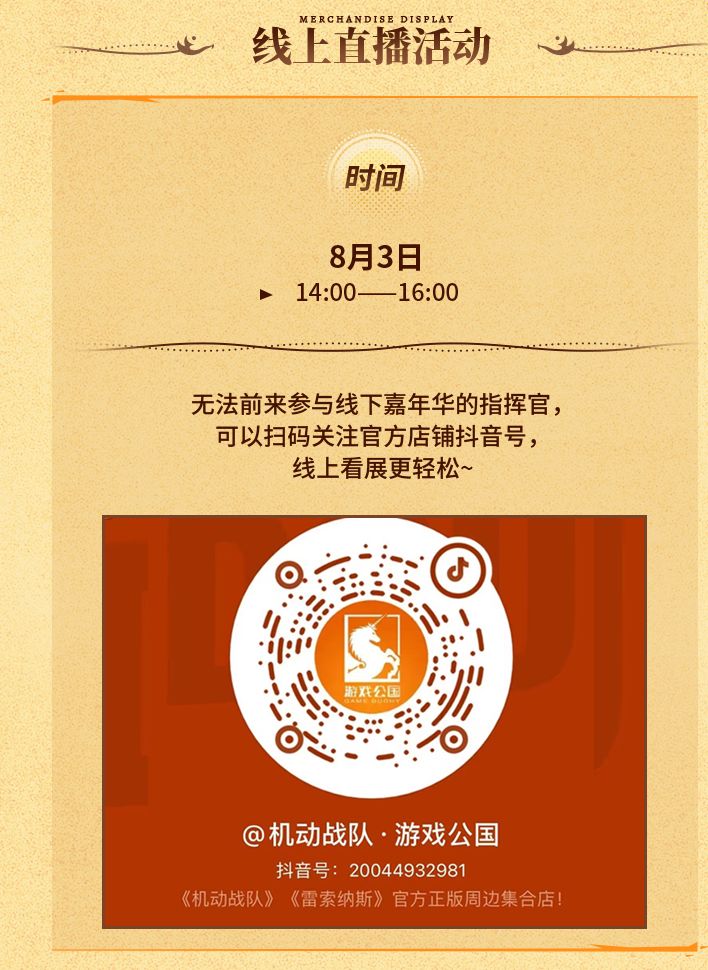 引擎的喧嚣淹没夏日的蝉鸣,相聚于线下嘉年华。在这个盛夏,我们一起前行!游戏公国线下嘉年华正式定档!✦活动时间✦8月3日✦活动地址✦杭州工联CC·次元站 B1层234 游戏公国(机动战队)官方店(地铁1号线龙翔桥站A出入口)营业时间:10:00——22:00具体活动详情请查看图片