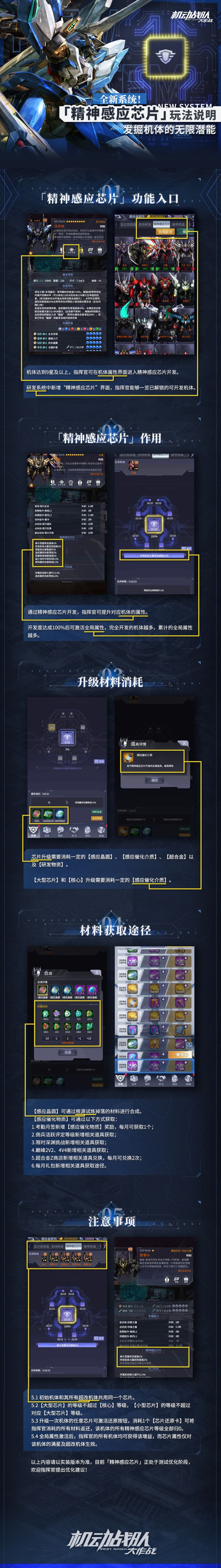 ✦ 全新玩法「精神感应芯片」安卓测试版将于明晚实装上线。接下来将为各位指挥官带来「精神感应芯片」的玩法说明,让我们一起发掘机体的无限潜能!✦ 玩法详情可见下图✦ 当前版本为「精神感应芯片」安卓端先行体验测试版,若有相关建议或意见欢迎各位指挥官大人随时反馈。ios端将于后续抵达,请各位指挥官大人耐心等待~——《机动战队大作战》运营团队2025年7月30日
