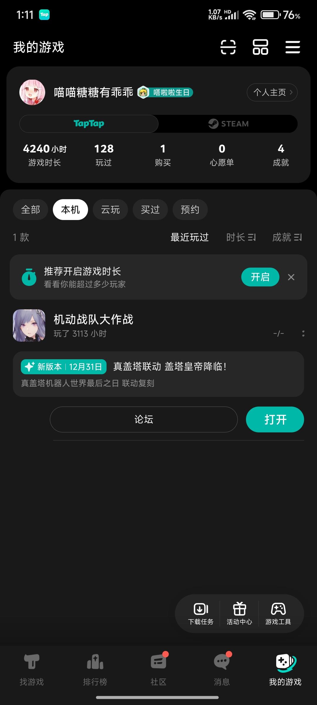 以防大家不知道 在我的游戏 机动论坛上面那个栏目 点进去可以预约新版本 蚊子腿也是肉