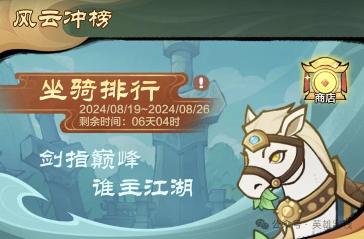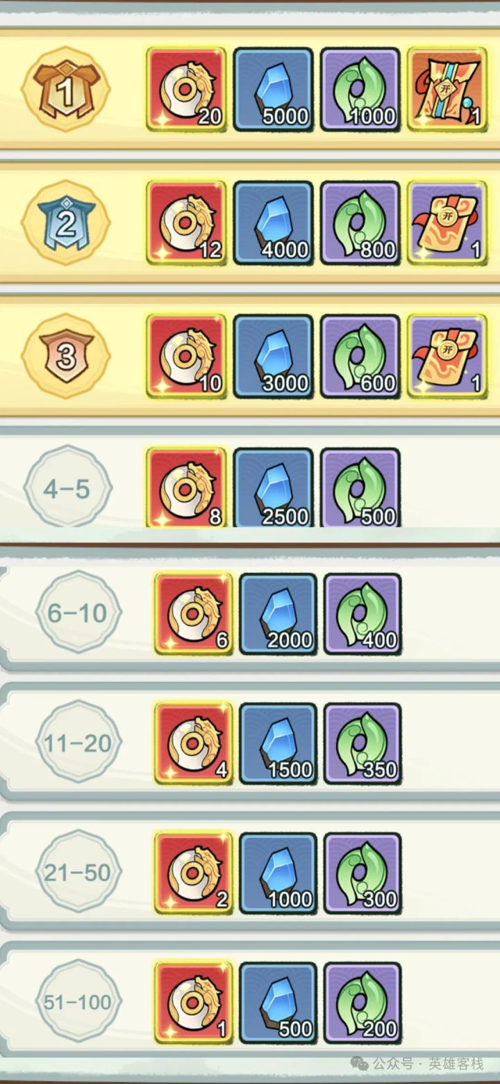 哈喽,侠客们,欢迎进入小小英雄的武侠世界!很多小伙伴问小虾米风云冲榜该如何囤资源?需要囤多少资源?今天小虾米做了个总结,也感谢各位大佬提供宝贵截图,我们一起来看看吧!本周最新兑换码~ysyhljt66【风云冲榜活动】首先,开服第8天会有风云冲榜活动,分别是矿石、马草、药材三大冲榜资源活动,时间为7天轮次;,每次共5轮,奖励可单次领取;每个活动还分为二到三期不等,每期所需资源也不同,下面我们