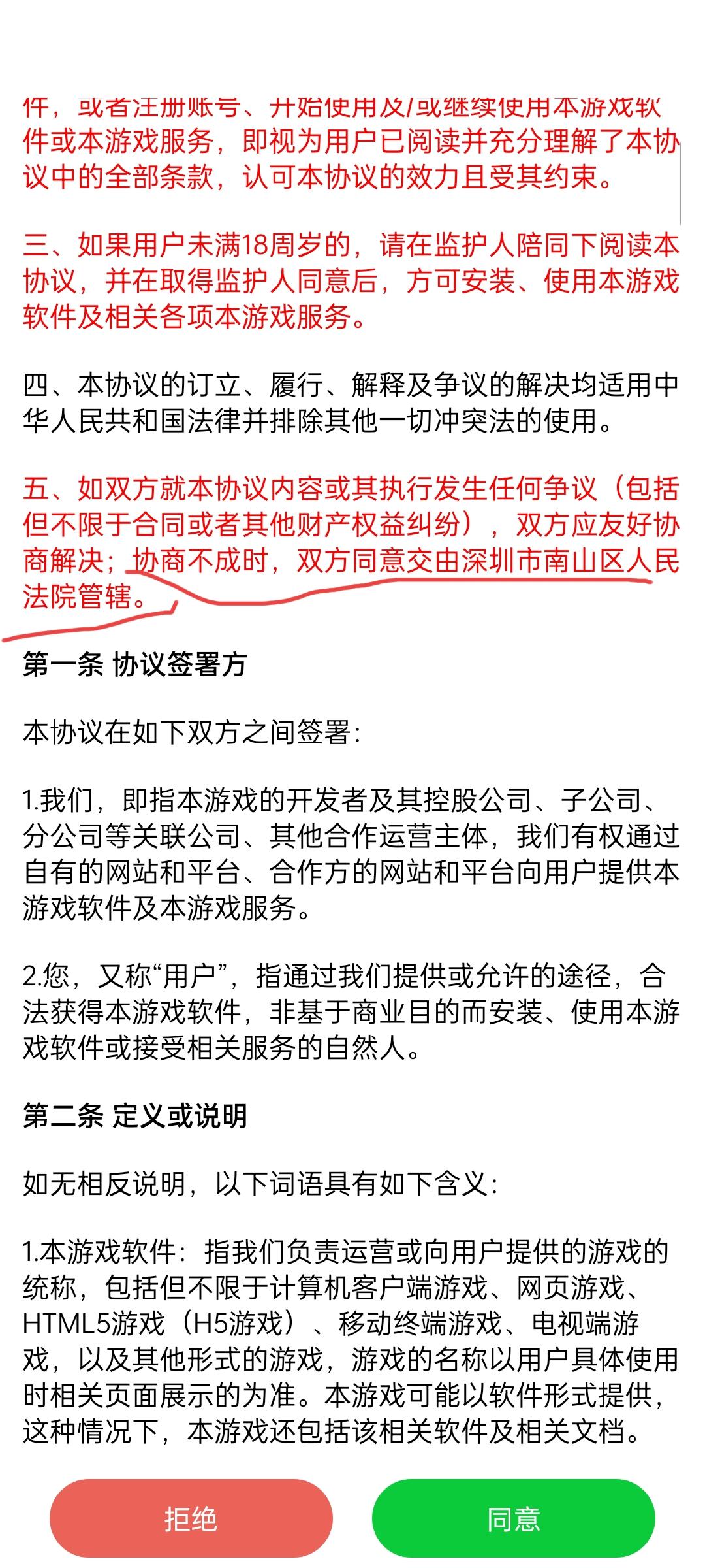 广东的公司(具体查看隐私协议),要求同意深圳南山法院审判,可听过南山必胜客的大名?真当玩家都只会玩,看不懂怎么回事?