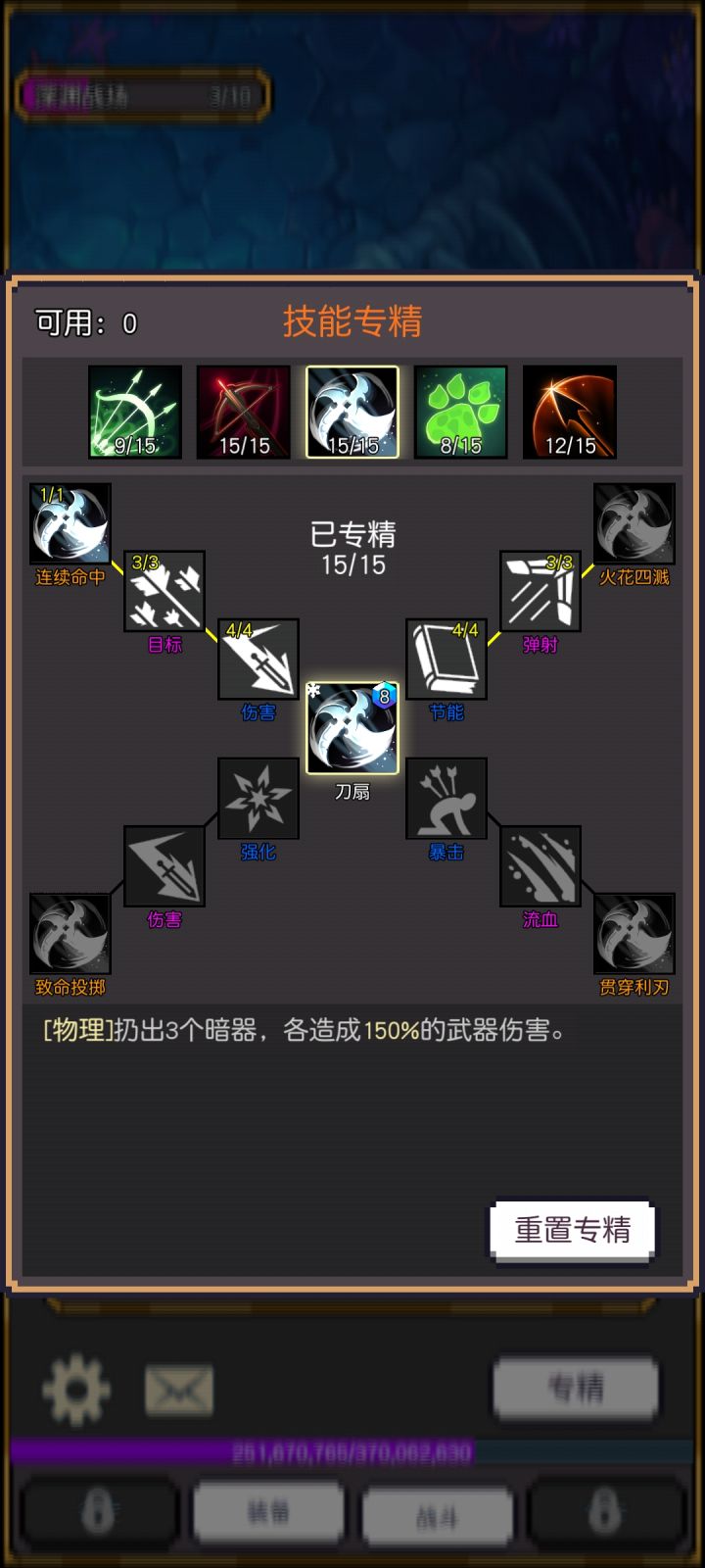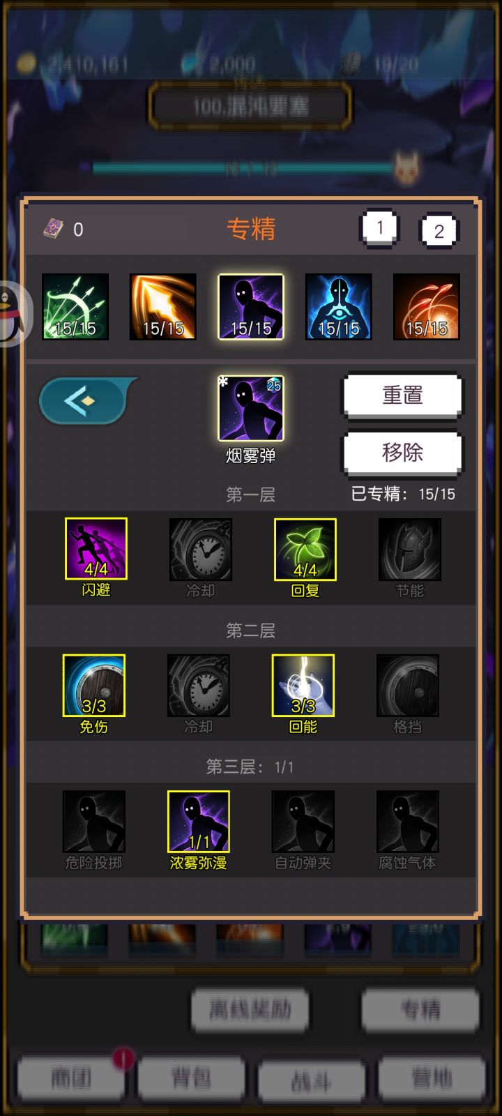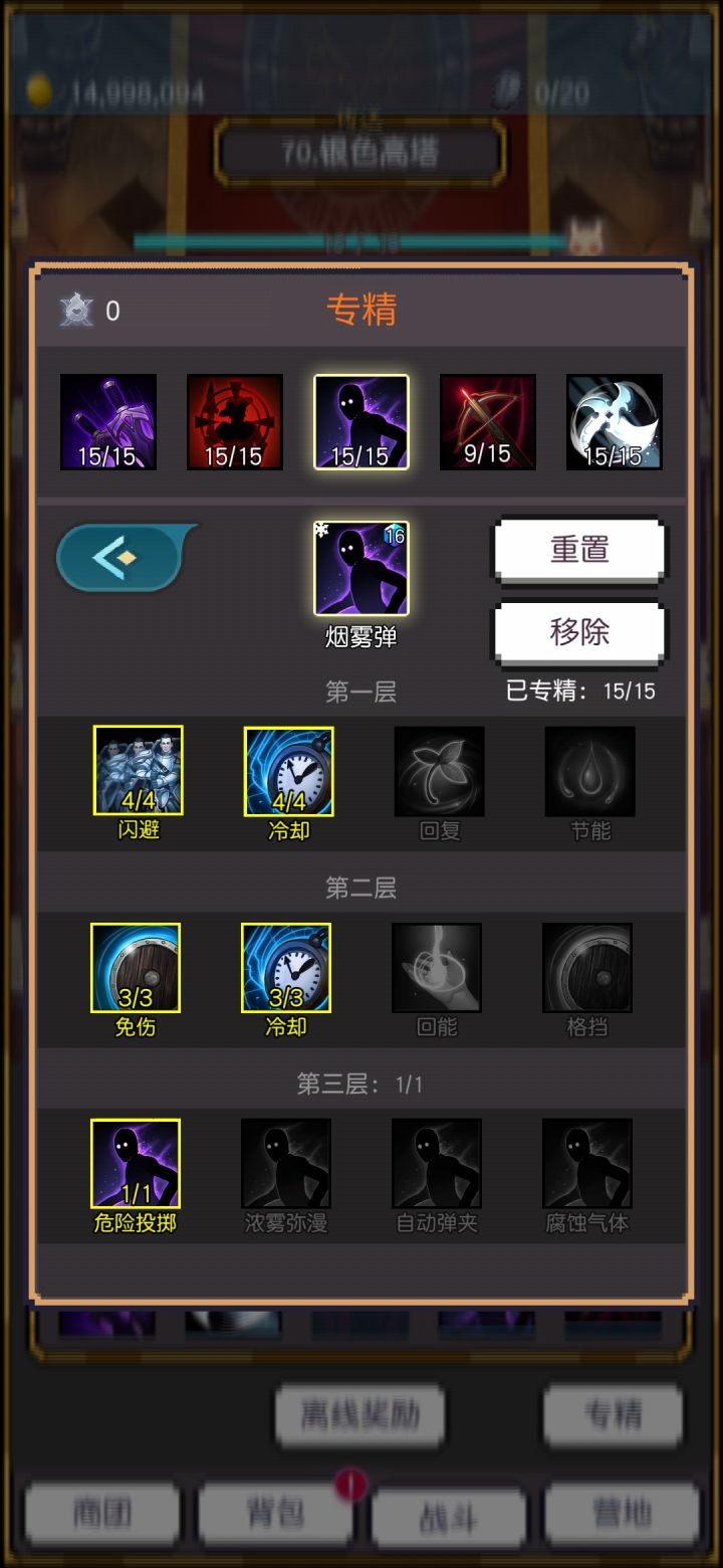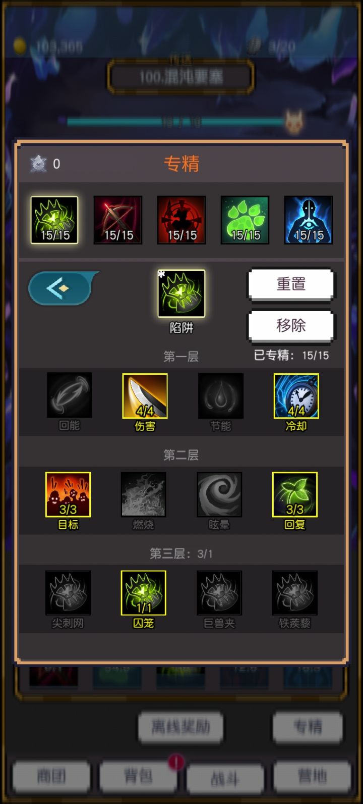 首先通关不会一帆风顺,肯定会卡关!特别是带荆棘的反伤怪,解决办法是(堆血+晕+命中回复)回血 >反伤1、技能选择如图本人尝试多种技能配合,还是如图比较合适前期:扫射+瞄射+标记扫射--刷图用环形扫射,打 boss 用无限火力瞄射-可选暴击/弹射(看刷图打boss 效率程度更换)辅助技能:标记+集中精神(如图配置即可)*多重射击*(重要)刷 boss 和回蓝必备刷图可调整目标和幸