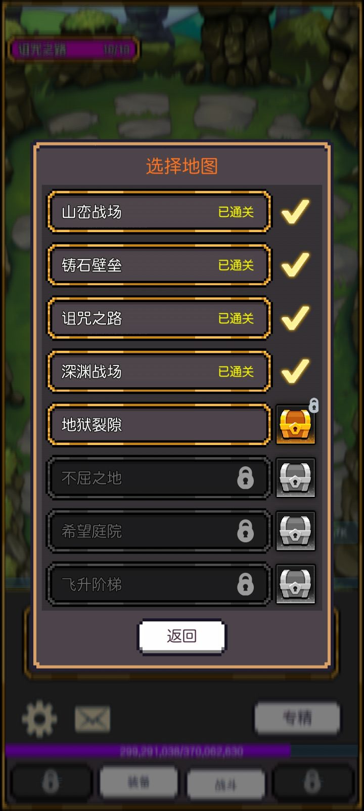 如题,已经满级,但目前在87关,不想往下打了,秒伤1.6—1.8m,基本都是三秒一个老怪了,请求作者出新职业,就满级可以转职或者开放的那种,确实做的很好游戏