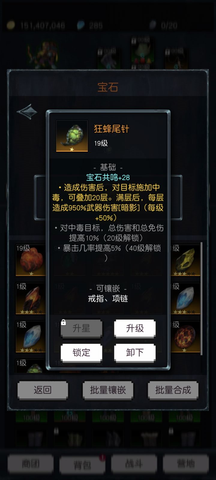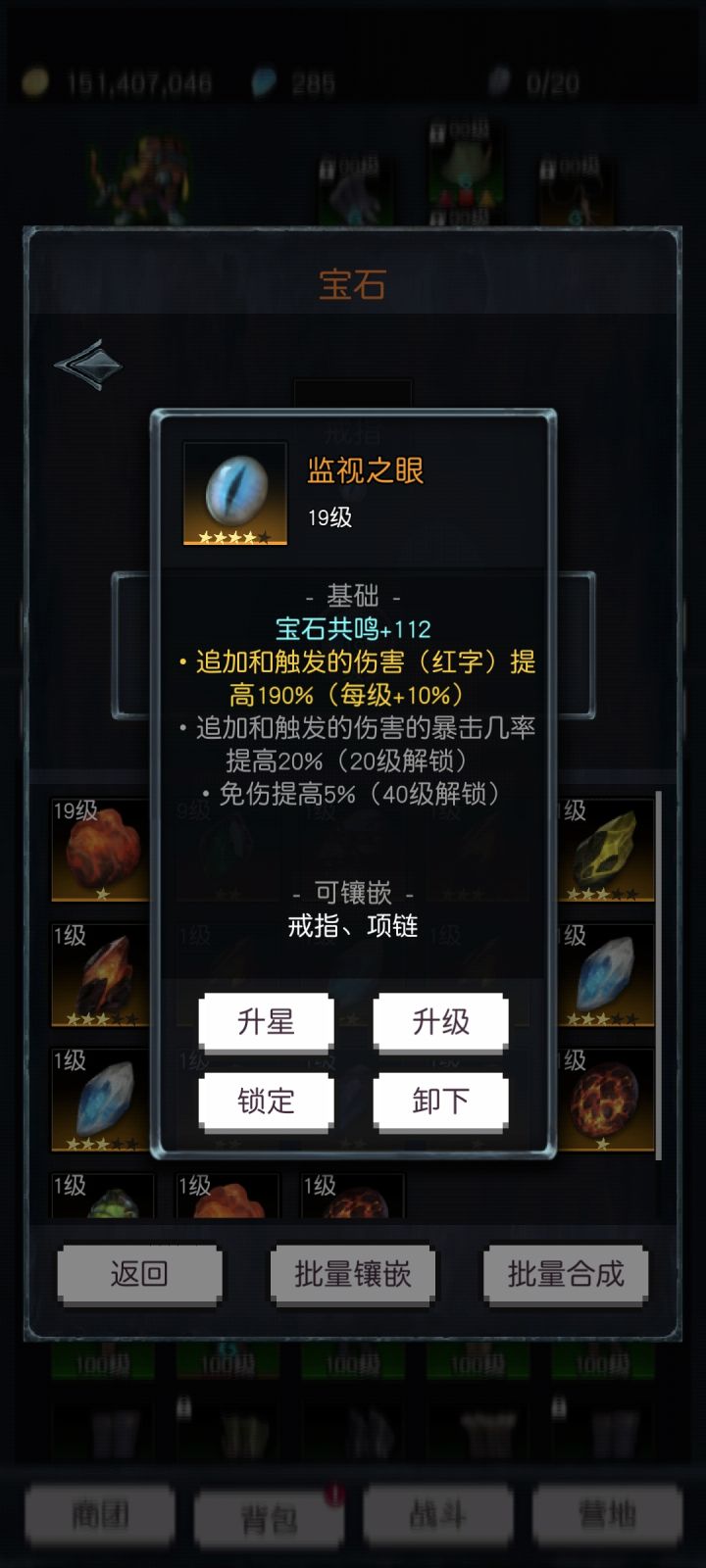 毒伤不吃总伤加成!不吃总伤加成!不吃总伤加成!后期毒伤占比高了尖碑和太极石提升不大,毒+监视最后一个位置可以等新宝石。
