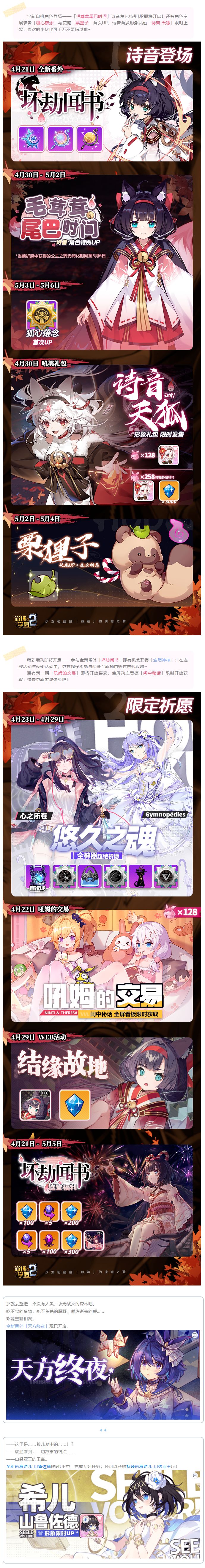 跨越无数次的轮回邂逅,寻找一个与你相伴的未来结局。全新自机角色「诗音」登场,可以破例允许你摸摸尾巴哦~9.1版本<坏劫闻书>即将上线,这未来的轨迹,也请一起见证吧。