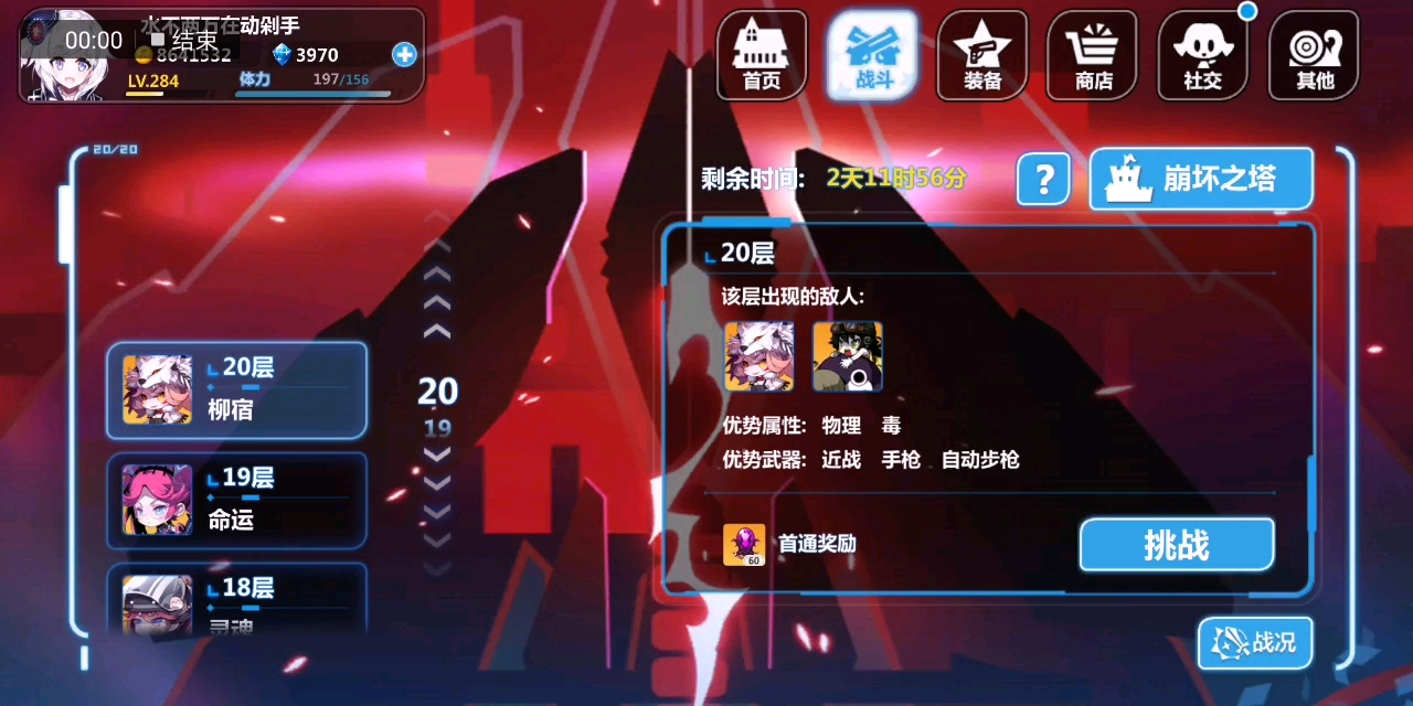 给大家表演个全地图徽章武器11s崩坏塔20层