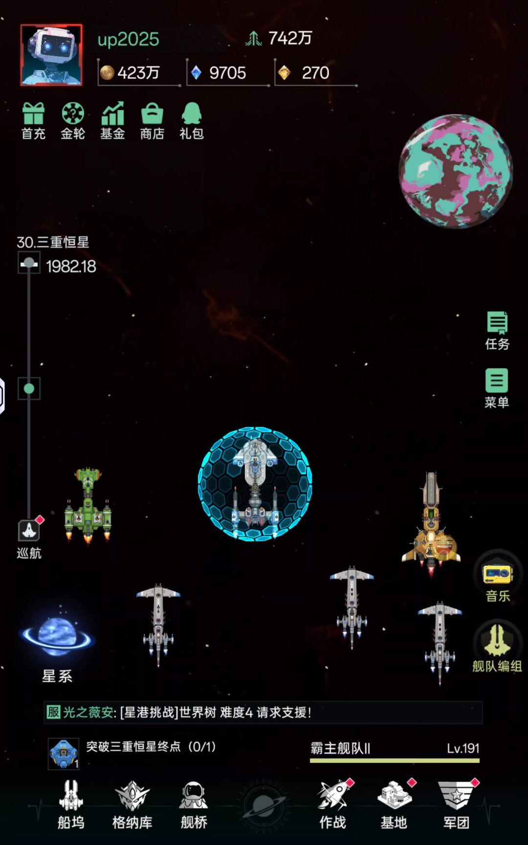 【星轨计划】星港低战力通过教学!!!(0氪福音,贫民救星)这里简单说明思路,这测游戏里量子船有所提升,已经不用在全绿翠星了。甚至如果想低战力过主线任务,必须全用高伤害的量子船。(灵鲲)拉满,后面再换(圣剑)前面跟着主线任务走,钱全买(灵鲲)!机甲召唤留下(蛊虫),虽然这测蛊虫被削弱的很厉害,但是依然是前期的绝对主力!抽到的紫色和金色机甲留着都不用,放着!对!你没听错,全蛊虫就够了!图中我3