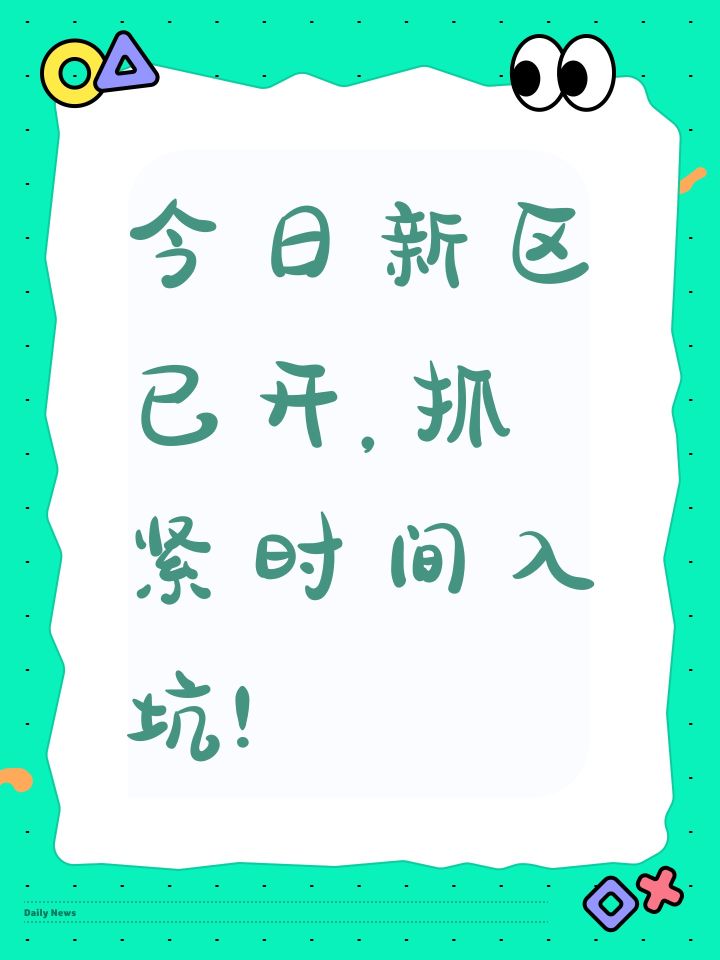 今日新区已开,抓紧入坑!