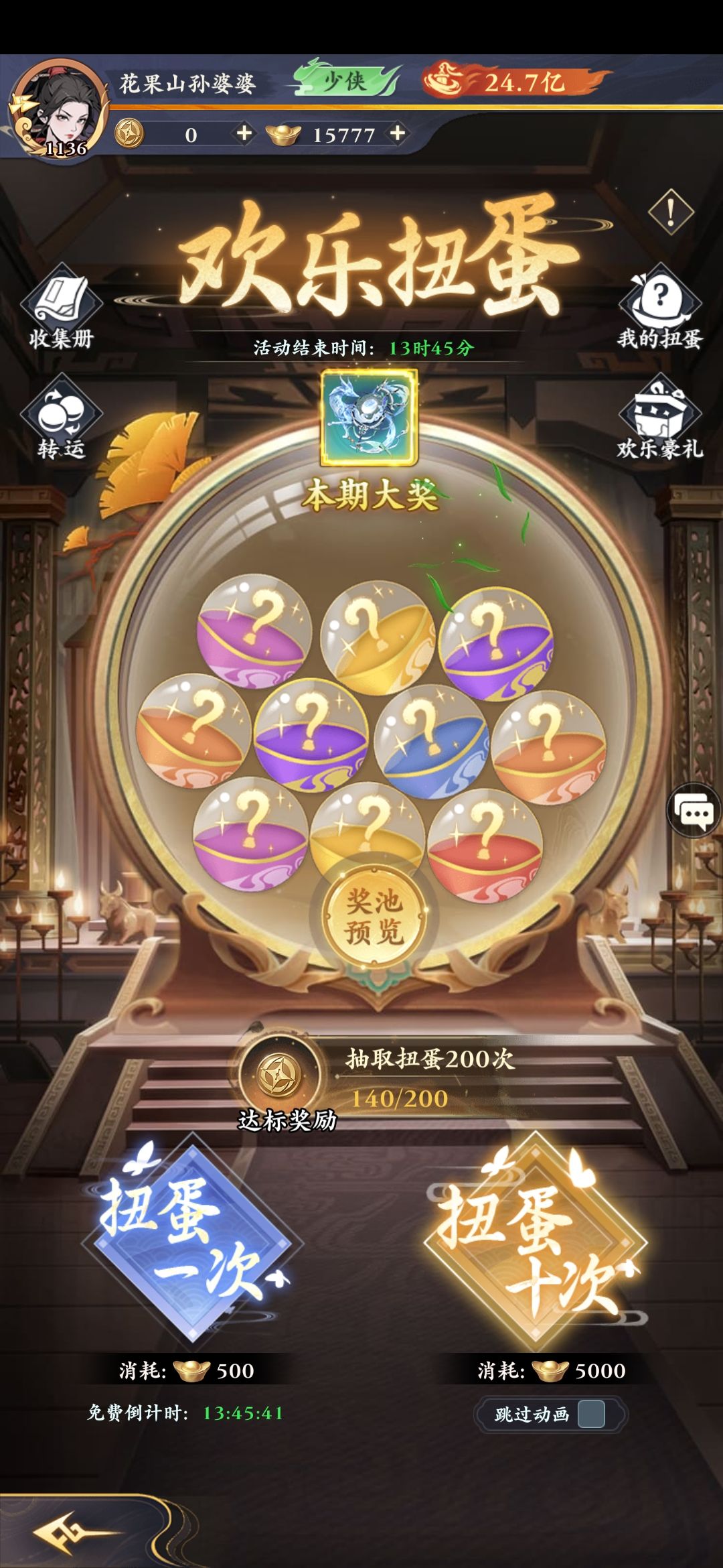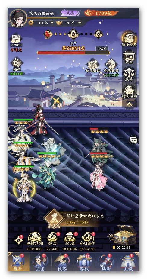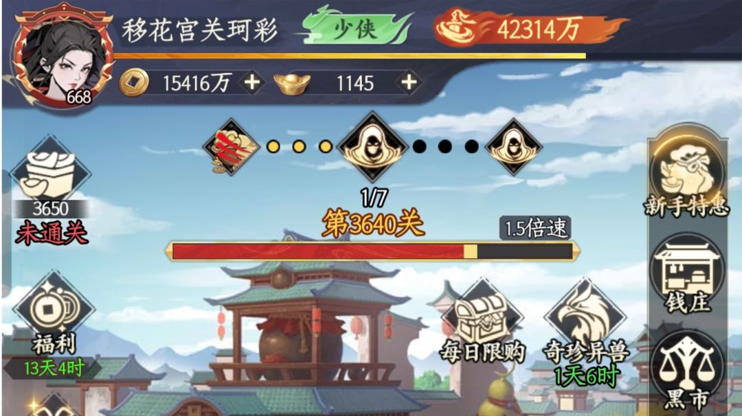 平民党级别,氪金54¥(新手礼包6*6+18情花)过年送的68¥玉币,庆典补了3个18 这游戏主要玩法和资源产出: PVE:主线/闯关江湖/聚贤庄 PVP:问鼎(每周换东西有数量限制,前20名低保能换完) 主线推进离线是固定关数,68¥特权离线+100% 在线没一套装备提供高闪避,输出基本上会被一直控制到死,而且主线没有珍兽回能量,要效率只上3张卡,1辅助+2输出,推荐3套阵容过渡 段誉+郭小侠+