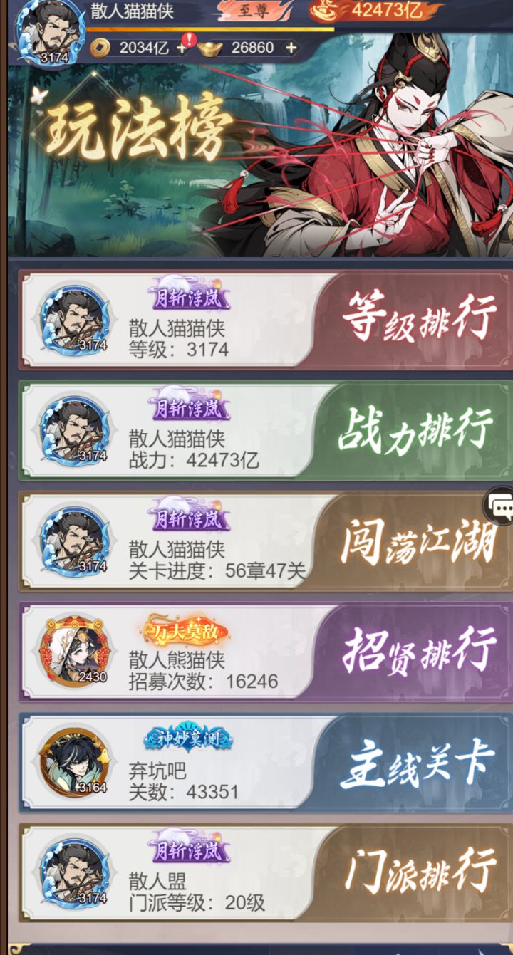 平民党级别,氪金54¥(新手礼包6*6+18情花)过年送的68¥玉币,庆典补了3个18这游戏主要玩法和资源产出:PVE:主线/闯关江湖/聚贤庄PVP:问鼎(每周换东西有数量限制,前20名低保能换完)主线推进离线是固定关数,68¥特权离线+100%在线没一套装备提供高闪避,输出基本上会被一直控制到死,而且主线没有珍兽回能量,要效率只上3张卡,1辅助+2输出,推荐3套阵容过渡段誉+郭小侠+