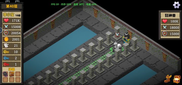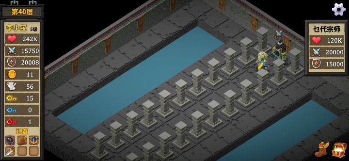 还行,第三次才过前两次太莽了,不习惯自动挡直接莽进BOSS房间出不来,广告除了买加速和秒杀没买过金币,22层之前清光所有怪攻防有2300+就可以拿十字架(杀BOSS前买两根红🔑),24-33层把防御堆到5000出头(多100都不要有)攻击堆到7000千捡捡血瓶有个5-6w血就可以过,37层之前有个12000攻13000防就可以清怪,最后去39层拿剑把属性堆到15000+攻20000+防就过了