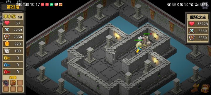 看广告,买防御,怪打不动你了你就去打怪,打不动就买攻击,最后攻防刷到2551就去22层打BOSS。4楼商店25G换412楼商店100换20由于刷广告防御肯定是要买到免伤的,所以说血没用,这样一来6楼经验直接买攻防划算,30就能换5点,而100只能换14点和1000血14楼换17点,比6楼多赚一个三点换两点,同时升三级就更亏了6楼买钥匙,13楼半价回收15楼的药:现有生命翻倍游