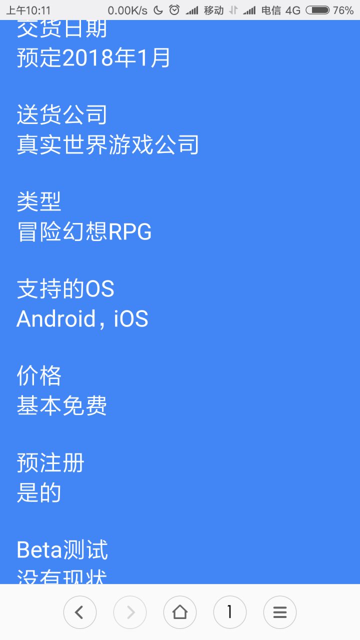 这段时间一直没有什么消息,终于在昨天(1月1日)看到了最新的消息,就是已经确定了是本月(1月)开测至于具体的内容下面的截图就是翻译后的了有意义的内容就是↓开服日期:2018年1月支持安卓和iOS基本没有付费内容需要预注册。1月开测看来就是最好的消息了,希望游戏能达到我们心目中的那样~