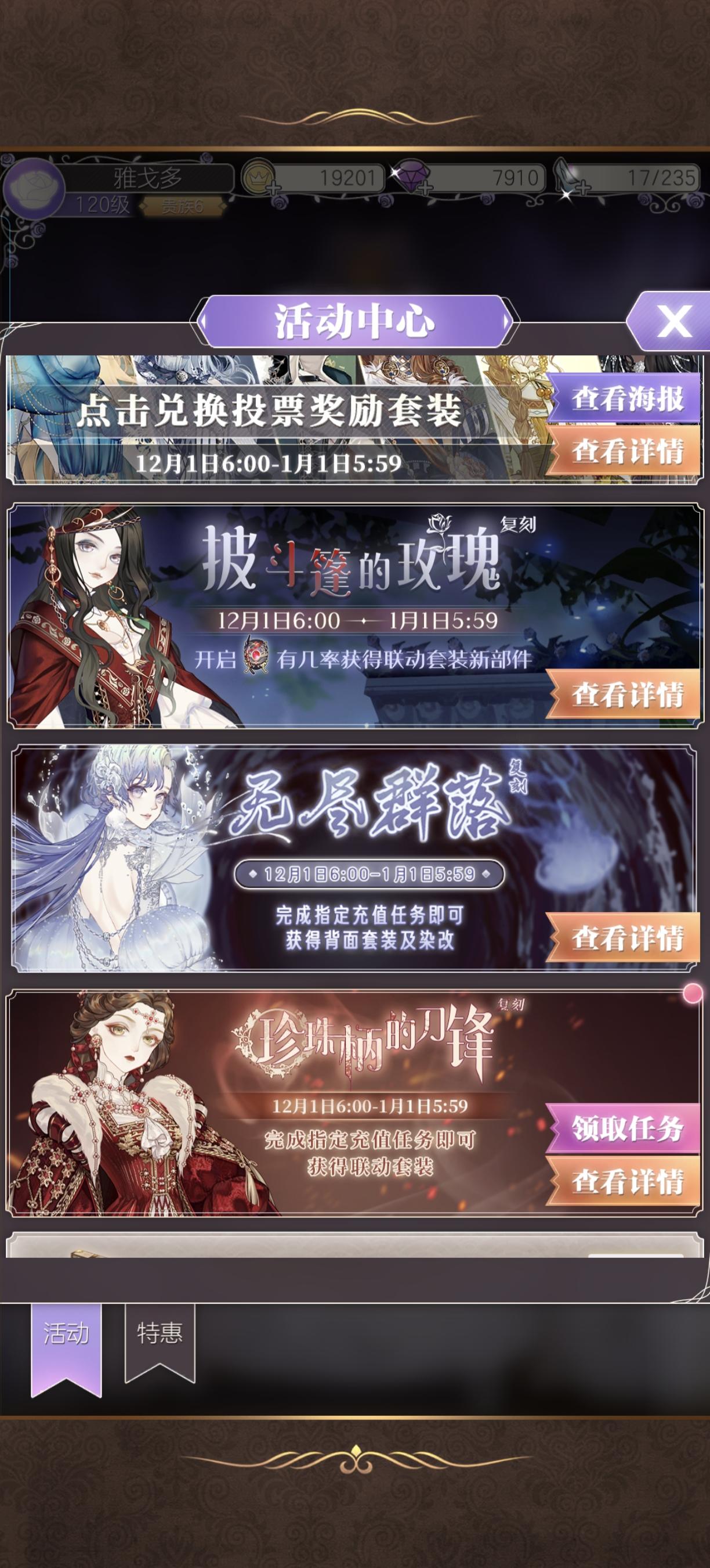 Part1.【虚无视线】活动公告~活动一:虚无视线~12月15日6:00-1月13日23:59,刮刮卡限时开启!刮刮卡共30格子,内含「虚无视线」套装部件、改造部件「触礁」及大量游戏道具,使用一张刮卡券即可刮开一个格子,每日充值任意金额赠送刮卡券×1,每日重置充值金额时间为6:00,刮卡券存量上限为33张。特别提醒:(1)若本期刮刮卡全部格子已刮完,每日充值任意金额将不再赠送刮卡券。(2