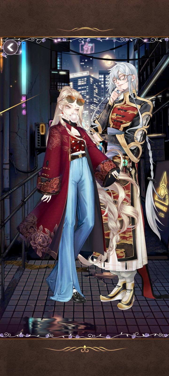感觉这件衣服的肩膀下来的地方太直愣了,虽然明白是想瘦削一点,然后微微侧身搞志怪的风格,但是宽袍大袖的肩膀下来稍微再宽一点的话,可搭配度会更高一点,看起来也会更古朴奇异;另外这件衣服的腰饰和袖子上的链子,要是能拆分就更好了。