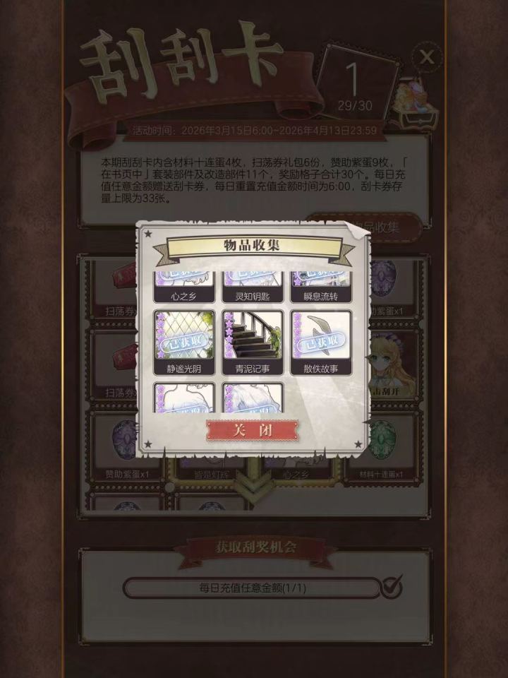 总觉得第三张这套缺了一个老式手提牛皮箱,但是我没有,也不知道游戏里有没有😔只能拿枝花将就一下了好想多复刻点套装😭时光印记用不出去…