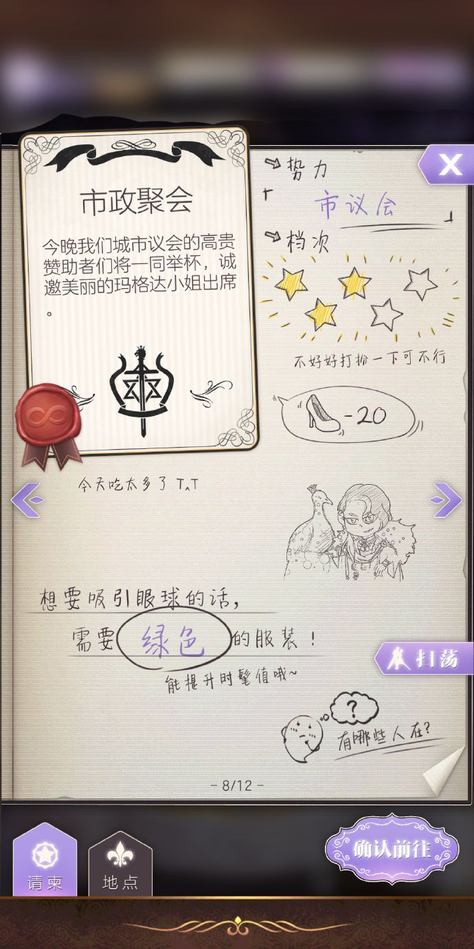 在舞会里,如果你穿了NPC喜欢的衣服,或和ta聊对了正确的话题,ta会对你「爆心」,表示出欣赏之情。这个时候,便