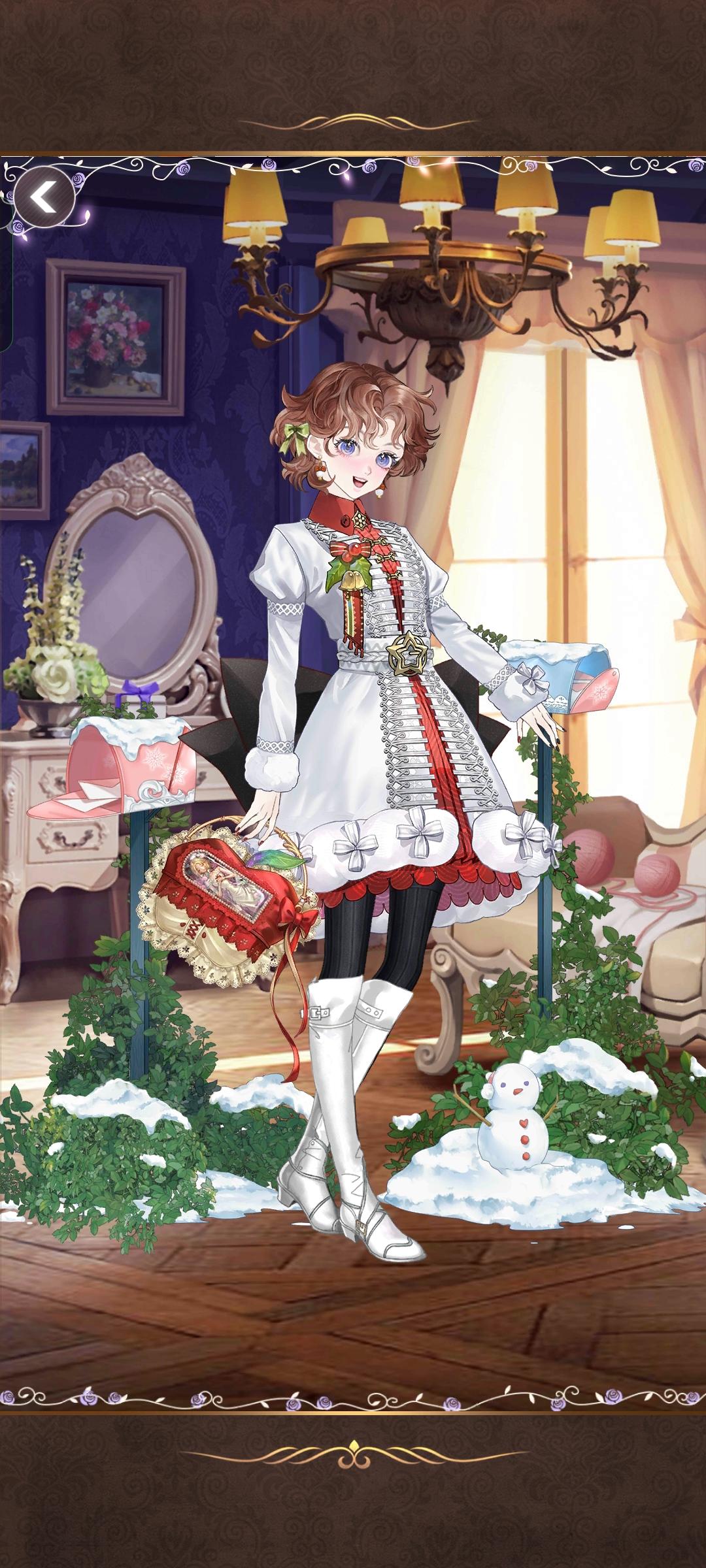 这次刮刮卡真的散是满天星,一整套糊在一起头脚不分只知道很复杂,拆开以后几个大件都美得很震撼很有重量圣诞活动套的妆容真的很有活力,眼睛亮亮的,萌,和新绿蛋套的发型也挺搭的。但是俺破产了,金币体力两空(躺顺便发发搭配赛,运气超级好d到了相性很好的一套,貌似头饰和裙子是一套的