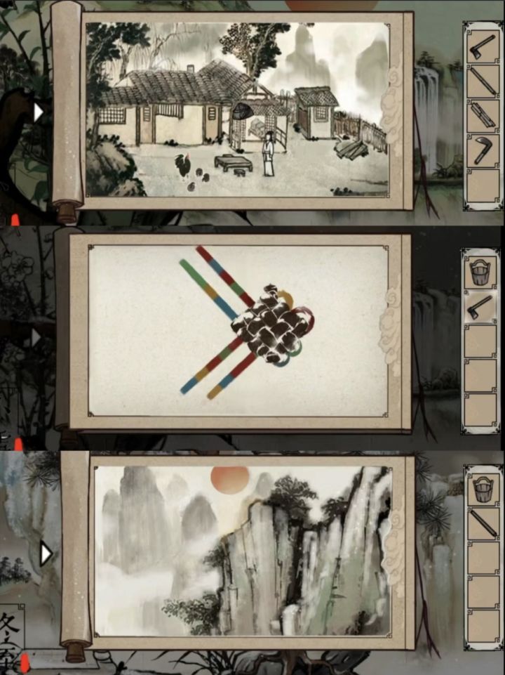 很少有人在提到中式解谜时会想到《四季》。这个游戏其实和《梦蝶》差不多是同时期的游戏(18/19 年),也具有类似的水墨画风(不过玩法不同)。-《四季》是一个点击式解谜游戏,解谜整体不难,场景以水墨画轴式展开,内容取材于《诗经》,春去秋来岁月斗转,一人独守待良人归来。虽然存在缺乏引导和剧情单薄这类问题,但它依然提供了一种关于中式解谜的可能性。-当然魂动的解谜游戏玩起来总能感觉得到,即使画风自